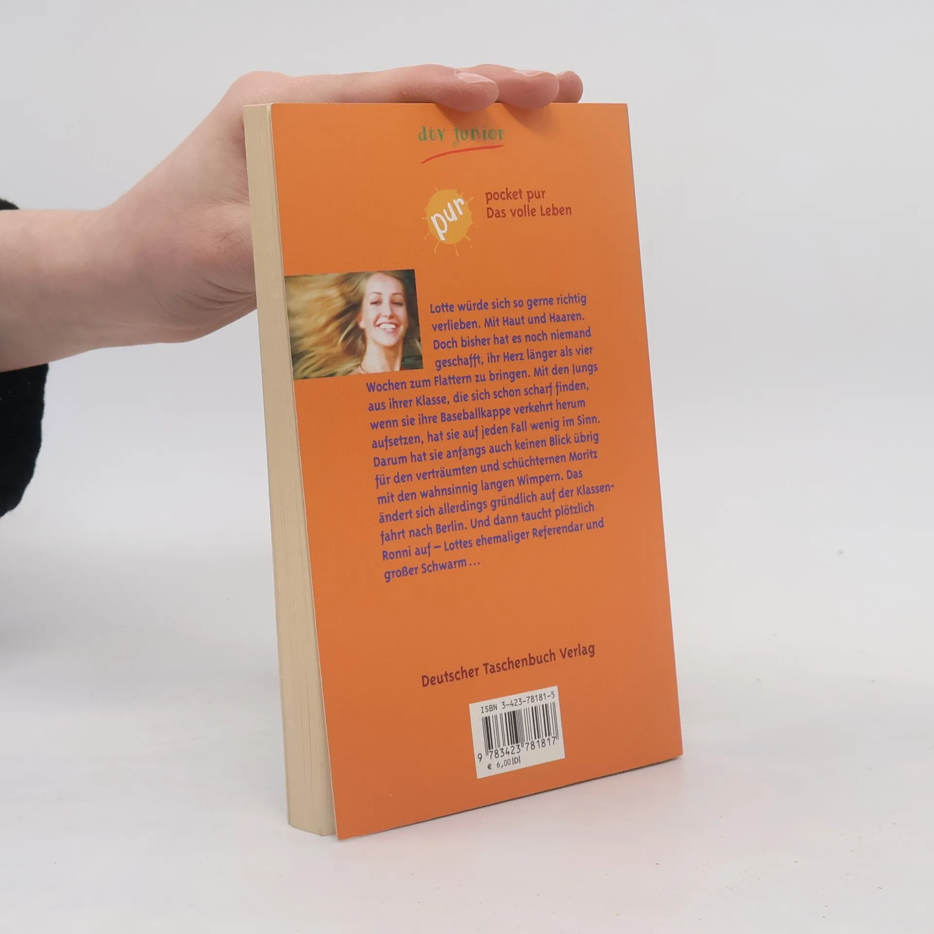 Lotte würde sich so gerne richtig verlieben. Mit Haut und Haaren. Doch bisher hat es noch niemand geschafft, ihre Hormone länger als vier Wochen auf Trab zu bringen. Und seit ihrem letzten Reinfall mit Ronni Heuser, dem attraktiven Referendar an ihrer Schule, läuft Lotte wieder ohne Freund und Schwarm durch die Gegend. Höchstens mit einem leeren Gefühl im Bauch. Mit den pickelgesichtigen Jungs aus ihrer Klasse, die sich schon scharf finden, wenn sie ihre Baseballkappe verkehrt herum aufsetzen, hat sie auf jeden Fall wenig im Sinn. Moritz sitzt in der hintersten Bank und starrt Lotte an. Da sitzt seine Traumfrau und er kommt nicht an sie ran. Doch dann stehen die Sterne günstig. Eine Klassenfahrt nach Berlin ist angesagt, fünf Tage mit Lotte. Obwohl Lotte ihn vorerst nicht beachtet, gelingt es dem schüchternen und verträumten Moritz, sie auf sich aufmerksam zu machen, und die beiden kommen sich langsam näher. Doch da taucht Ronni plötzlich auf, Lottes früherer Schwarm, und beginnt sich für sie zu interessieren. Lotte muss sich entscheiden ... und gerät mitten rein in das Gefühlschaos der Liebe ...