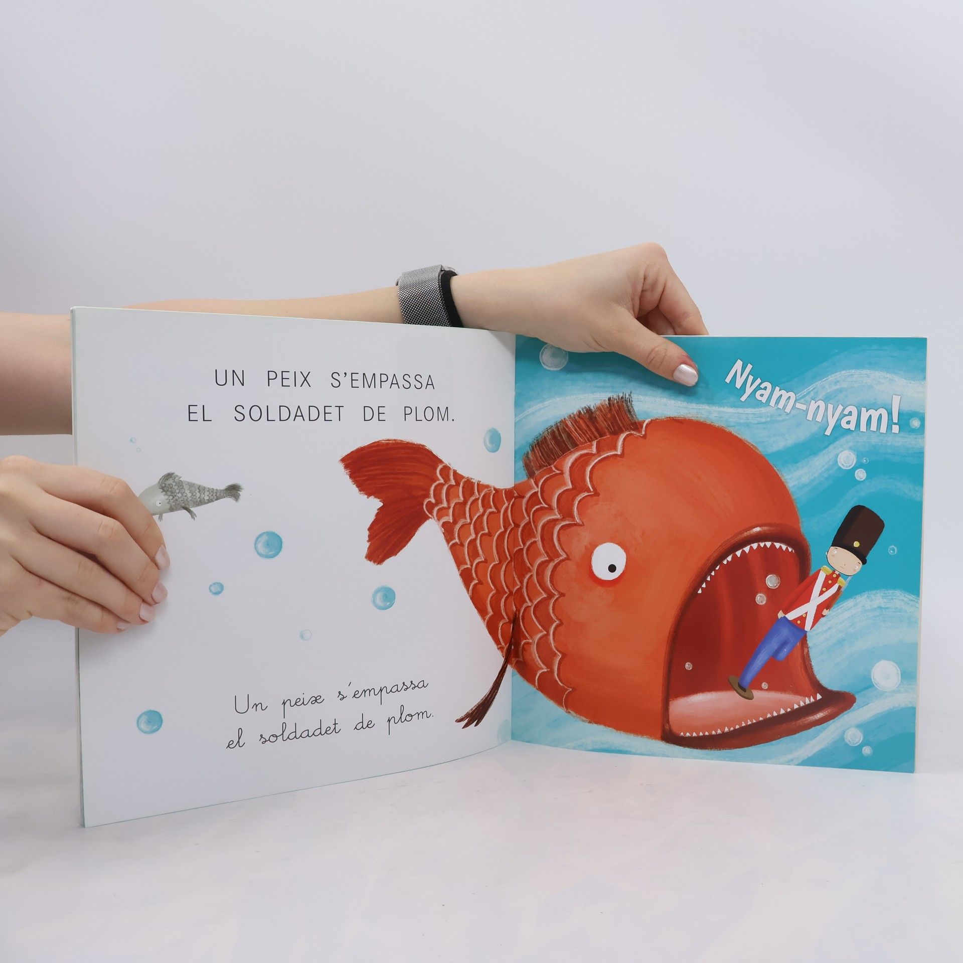 El soldadet de plom és un conte de Hans Christian Andersen, adaptat per les autores. A en Guillem li regalen una capsa de soldadets de plom, amb els quals juga sovint. De tots els soldadets, aquell a qui li falta una cama és el preferit del nen. Un dia un cop de vent llença per la finestra aquest soldaldet i el nen el perd. Comença així per al soldadet un fantàstic viatge ple de peripècies i entrebancs, del qual sortirà victoriós gràcies a la seva fermesa i valentia. Aquest conte clàssic mostrarà als infants la importància d'alguns valors com ara l'amistat i l'amor. Per afavorir la lectura autònoma dels infants, cada doble pàgina presenta el text de manera breu i escrit amb dues modalitats de de pal i lligada.