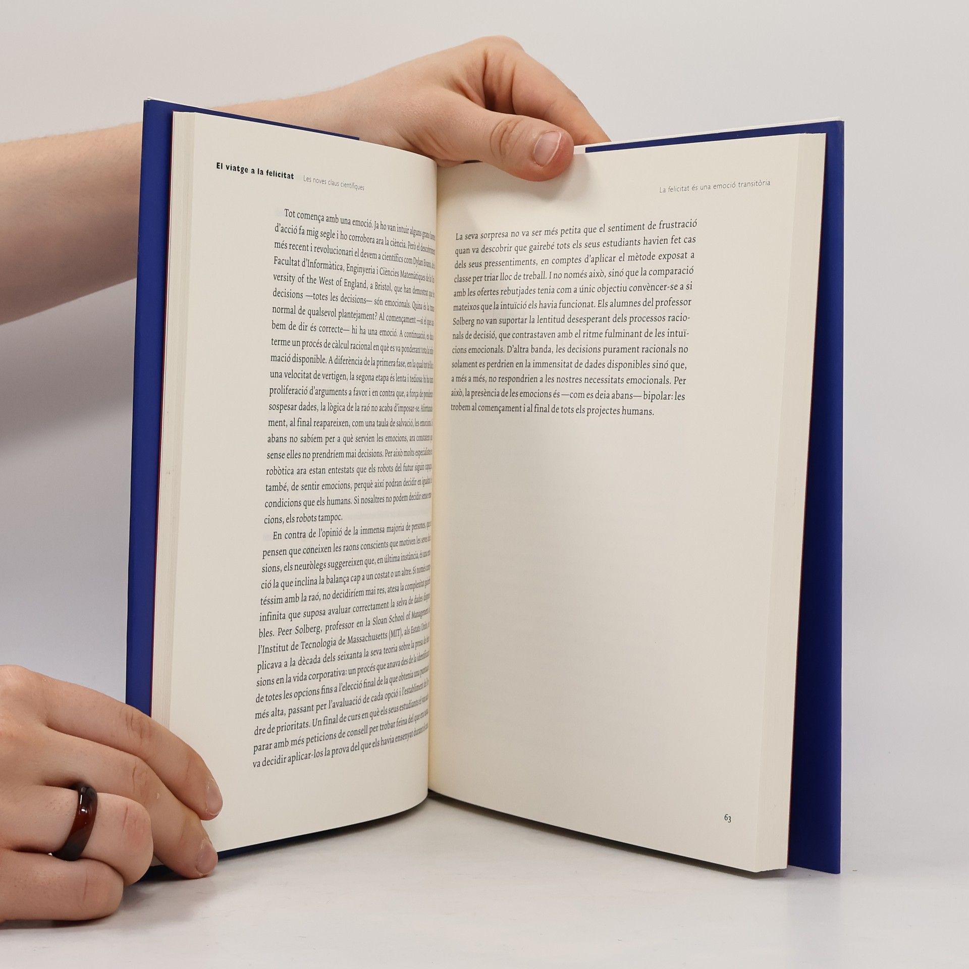 La recerca de la felicitat és una de les grans aventures humanes. Aquest viatge de l'ésser humà acaba de començar i el seu final és incert. Fa poc més d'un segle, l'esperança de vida era de trenta anys: el mínim per aprendre a sobreviure, si la sort acompanyava, i culminar el propòsit evolutiu de reproduir-se. No hi havia futur ni, per tant, la possibilitat de plantejar-se un objectiu tan insospitat com el de ser feliç. Aquesta era una qüestió que es deixava per a després de la mort i que depenia dels déus.La revolució científica ha desfermat el canvi més important de tota la història de l'evolució: la prolongació de l'esperança de vida, que ha generat més de quaranta anys redundants -en termes evolutius-. Per primera vegada, la humanitat té futur i es planteja, lògicament, com ser feliç ara i aquí. La gent s'ha submergit en aquestes aigües desconegudes pràcticament sense l'ajuda de ningú. Ara la comunitat científica intenta, per primera vegada, il·luminar el camí.Aquest llibre és una aproximació lúcida i apassionant a la felicitat i els seus condicionants: les emocions, l'estrès, els fluxos hormonals, l'envelliment, els factors socials, econòmics, culturals i religiosos... Una indagació que ens revela els descobriments científics més recents al voltant d'aquest tema, i que, en el darrer capítol, ens proposa la fórmula de la felicitat.