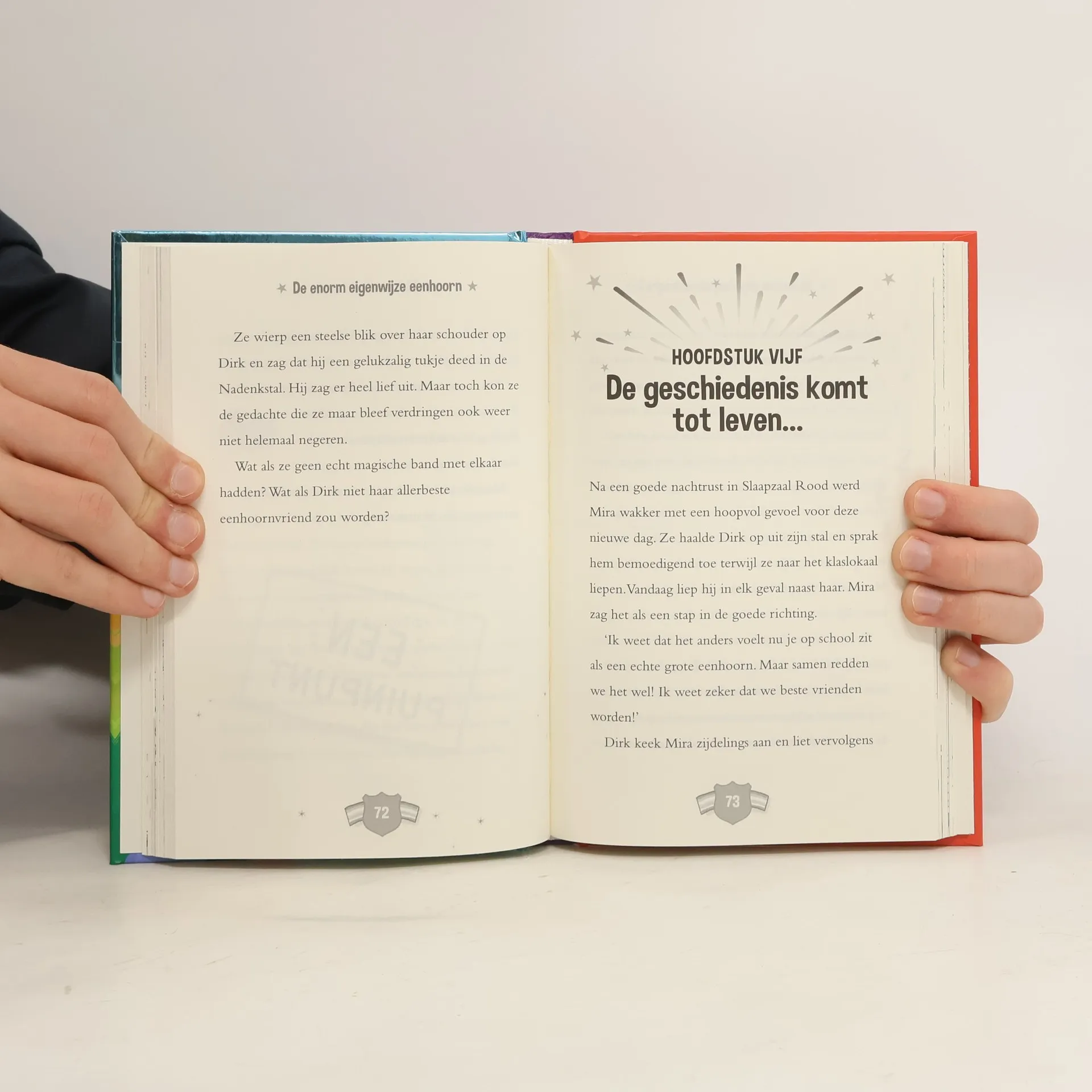 Mira mag eindelijk naar de eenhoornschool. Daar heeft ze altijd van gedroomd! Alle kinderen krijgen een eigen eenhoorn. Mira wil heel graag de magische speurtocht winnen. Maar zal dat lukken met haar eigenwzije eenhoorn Dirk? Met veel grappige tekeningen in zwart-wit. Vanaf ca. 7 jaar.