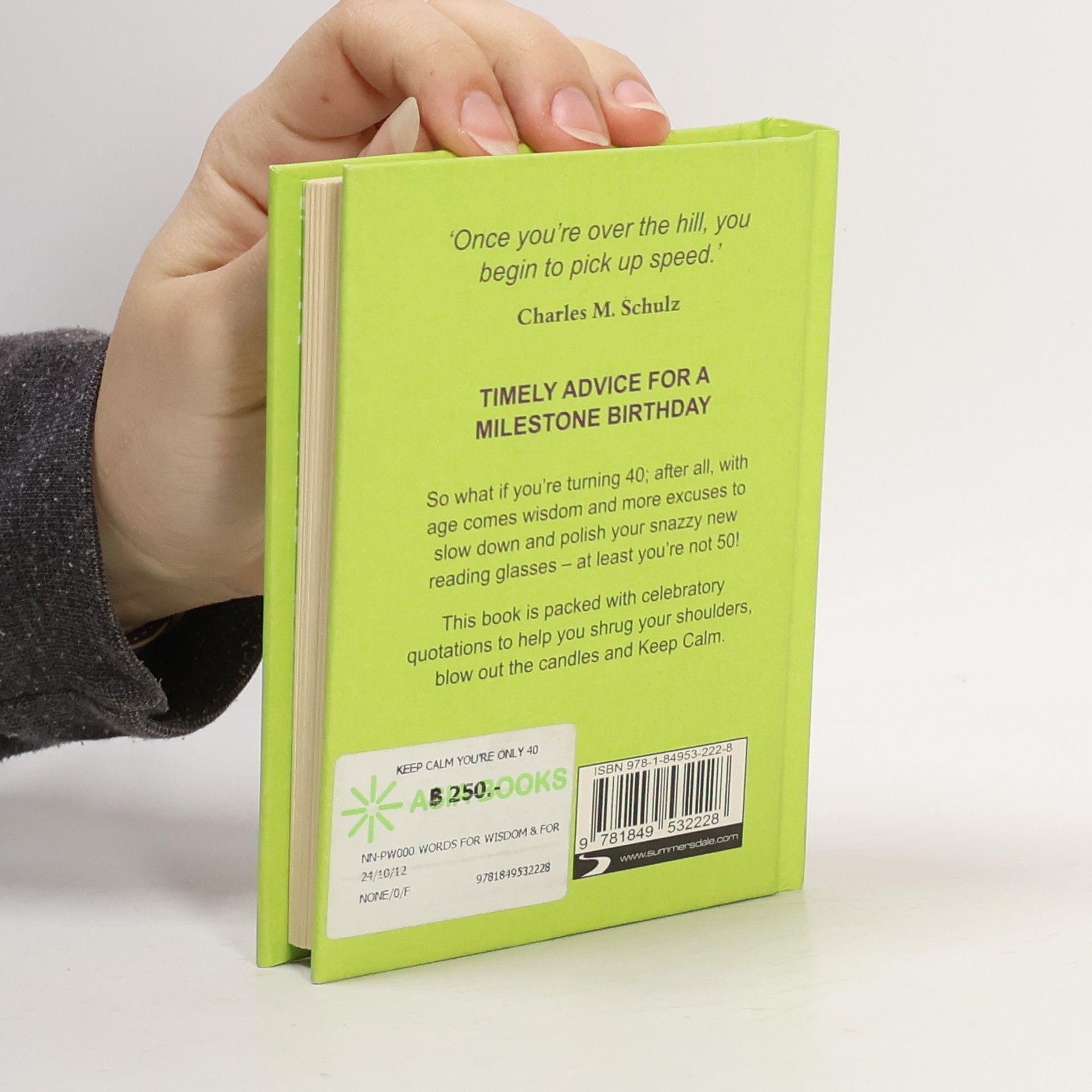 TIMELY ADVICE FOR A MILESTONE BIRTHDAY. So what if you're turning 40; after all, with age comes wisdom and more excuses to slow down and polish your snazzy new reading glasses, and at least you're not 50! This book is packed with celebratory quotations to help you shrug your shoulders, blow out the candles and Keep Calm.