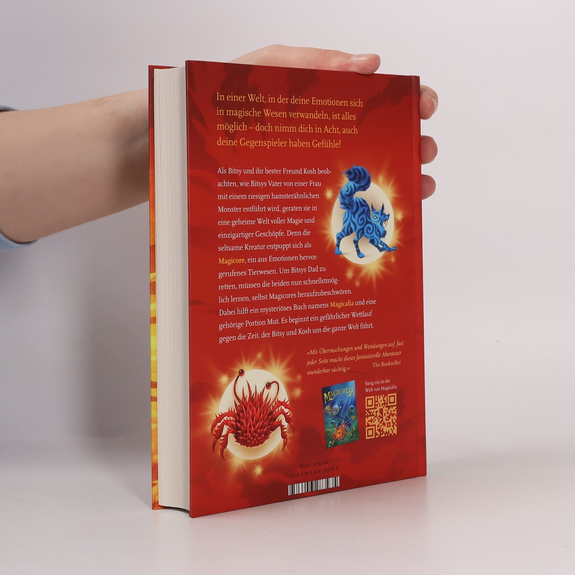 Eine mitreißende neue Reihe für alle, die schon immer wissen wollten, wo magische Tierwesen wirklich zu finden sind – und wie man sie heraufbeschwört. Als ihr Vater von einer mysteriösen Frau mit einem Hamstozeros – einer Kreuzung aus Hamster und Rhinozeros – entführt wird, entdecken Bitsy und ihr bester Freund Kosh unversehens eine geheime Welt voller Magie. Denn die seltsame Kreatur entpuppt sich als Magicore, ein aus Emotionen hervorgerufenes Tierwesen. Um den Vater zu retten, müssen die beiden ein magisches Relikt finden und dafür schnellstmöglich lernen, selbst Magicores heraufzubeschwören. Ausgestattet mit einem mächtigen Bestiarium namens Magicalia und einer gehörigen Portion Mut, begeben sich die beiden auf eine rasante Jagd, die sie um die ganze Welt führt.