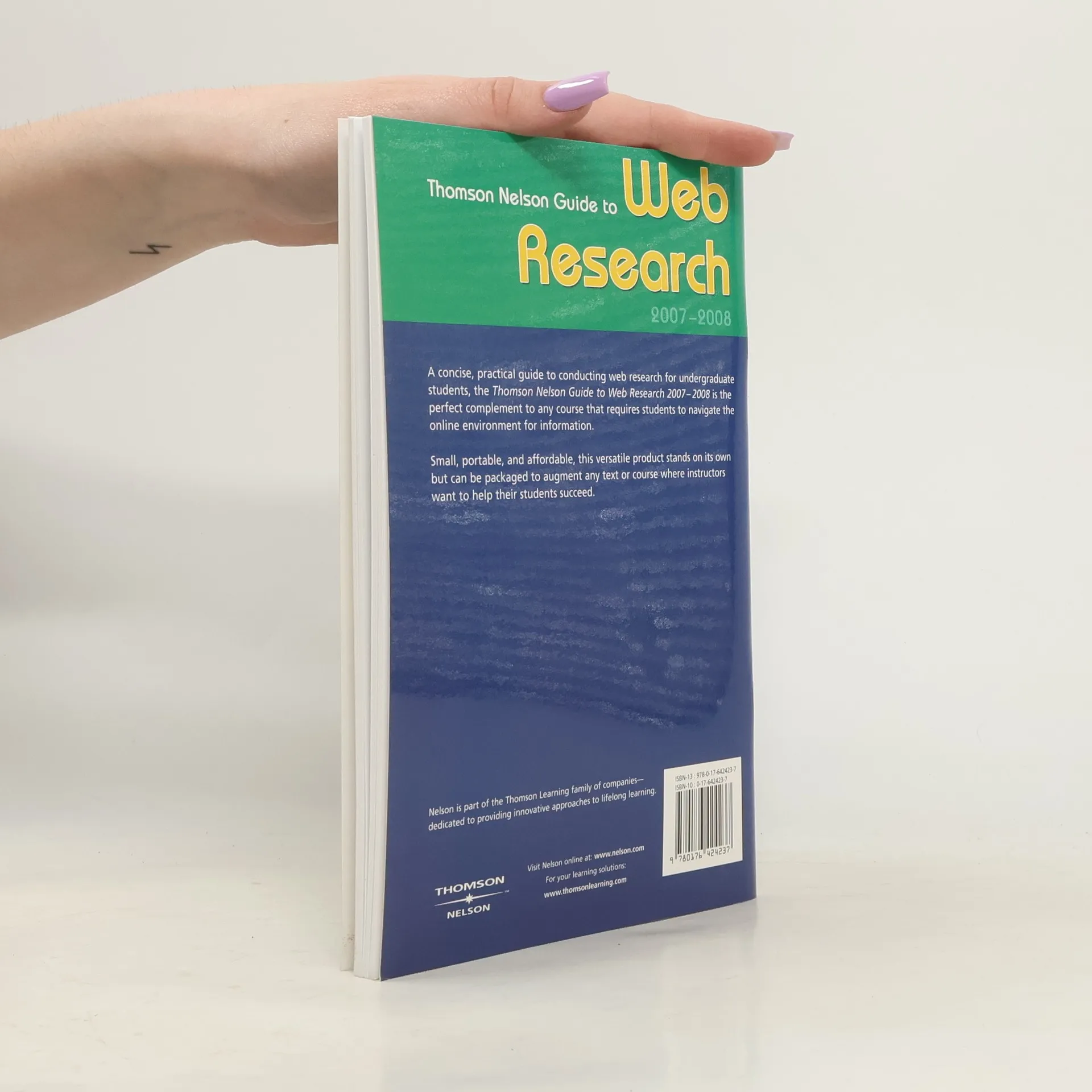 A concise, practical guide to conducting web research for undergraduate students, The Thomson Nelson Guide to Web Research 2007-2008 is the prefect compliment to any course that requires students to navigate the online environment for information. Small, portable, and affordable this versatile product stands on its own but can be packaged to augment any text or course where instructors want to help their students succeed.