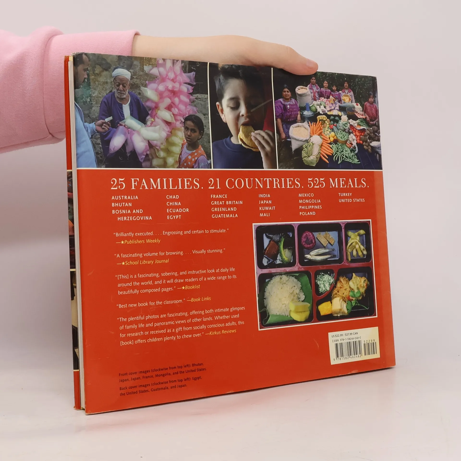 Sitting down to a daily family meal has long been a tradition for billions of people. But in every corner of the world this age-old custom is rapidly changing. From increased trade between countries to the expansion of global food corporations like Kraft and Nestlé, current events are having a tremendous impact on our eating habits. Chances are your supermarket is stocking a variety of international foods, and American fast food chains like McDonald’s and Kentucky Fried Chicken are popping up all over the planet. For the first time in history, more people are overfed than underfed. And while some people still have barely enough to eat, others overeat to the point of illness. To find out how mealtime is changing in real homes, authors Peter Menzel and Faith D’Aluisio visited families around the world to observe and photograph what they eat during the course of one week. They joined parents while they shopped at mega grocery stores and outdoor markets, and participated in a feast where a single goat was shared among many families. They watched moms making dinner in kitchens and over cooking fires, and they sat down to eat with twenty-five families in twenty-one countries--if you’re keeping track, that’s about 525 meals! The foods dished up ranged from hunted seal and spit-roasted guinea pig to U.N.-rationed grains and gallons of Coca-Cola. As Peter and Faith ate and talked with families, they learned firsthand about food consumption around the world and its corresponding causes and effects. The resulting family portraits offer a fascinating glimpse into the cultural similarities and differences served on dinner plates around the globe.