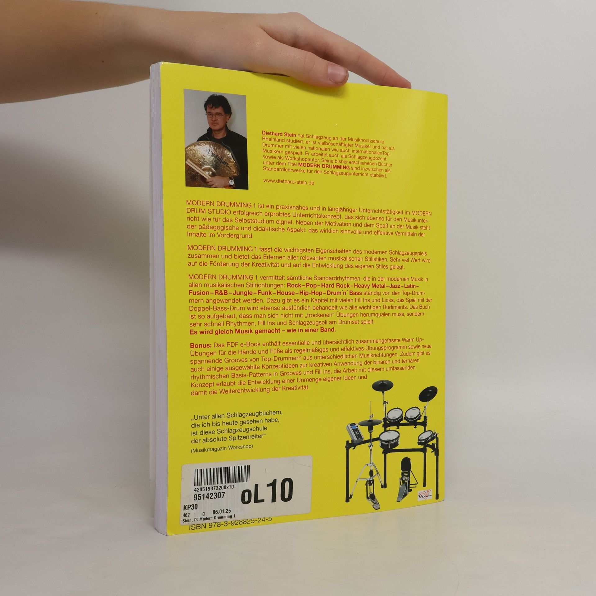 Das Buch bietet ein praxisorientiertes Lernprogramm für Schlagzeuger mit 1100 Übungen und einer Vielzahl von musikalischen Elementen. Neben 8 Play Along-Songs und 5 Solostücken werden wichtige Stilistiken moderner Musik vermittelt, die von Top-Drummern genutzt werden. Es enthält Kapitel zu Fill Ins, Licks, Standardrhythmen und Rudiments sowie Anleitungen zum Doppel-Bassdrum-Spiel. Der Fokus liegt auf dem unmittelbaren Spiel am Drumset, ohne sich in trockener Theorie zu verlieren.