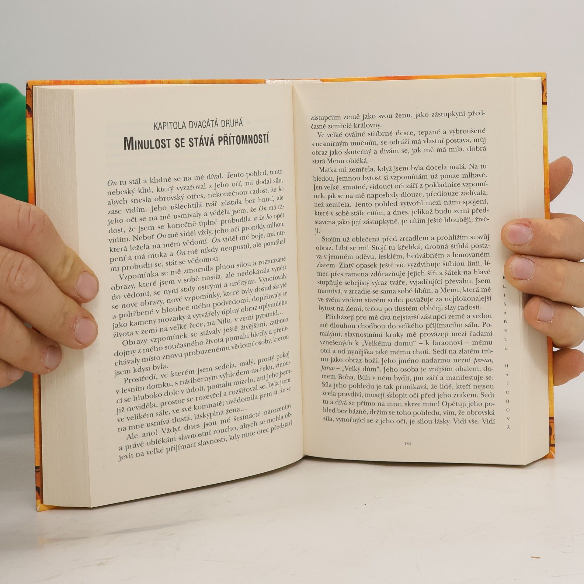 Autorka mísí vyprávění ze svého současného života, od dětství až do dospělosti, se vzpomínkami na minulý život, který strávila jako faraonova dcera. Jako bychom v chrámových síních seděli s ní, nasloucháme učení velekněze Ptahhotepa, který ji na tuto cestu k nejvyšší moudrosti připravuje a vede k hluboké pravdě o smyslu života a důsledcích našich činů.