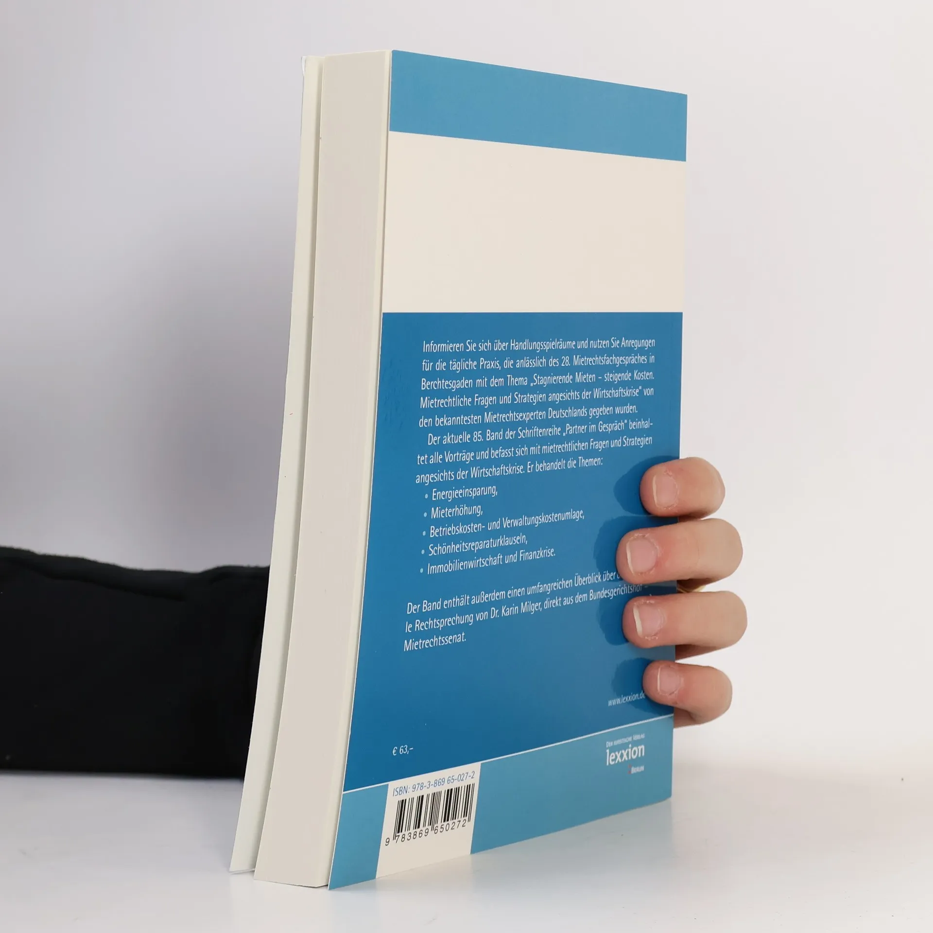 Informieren Sie sich uber Handlungsspielraume und nutzen Sie Anregungen fur die tagliche Praxis, die anlasslich des 28. Mietrechtsfachgespraches in Berchtesgaden "Stagnierende Mieten - steigende Kosten. Mietrechtliche Fragen und Strategien angesichts der Wirtschaftskrise" von den bekanntesten Mietrechtsexperten Deutschlands gegeben wurden. Der aktuelle 85. Band der Schriftenreihe "Partner im Gesprach" beinhaltet alle Vortrage und befasst sich mit mietrechtlichen Fragen und Strategien angesichts der Wirtschaftskrise. Er behandelt die Themen: o Energieeinsparung, o Mieterhohung, o Betriebskosten- und Verwaltungskostenumlage, o Schonheitsreparaturklauseln, o Immobilienwirtschaft und Finanzkrise. Der Band enthalt ausserdem o einen umfangreichen Uberblick uber die aktuelle Rechtsprechung von Dr. Karin Milger, direkt aus dem Bundesgerichtshof - Mietrechtssenat.