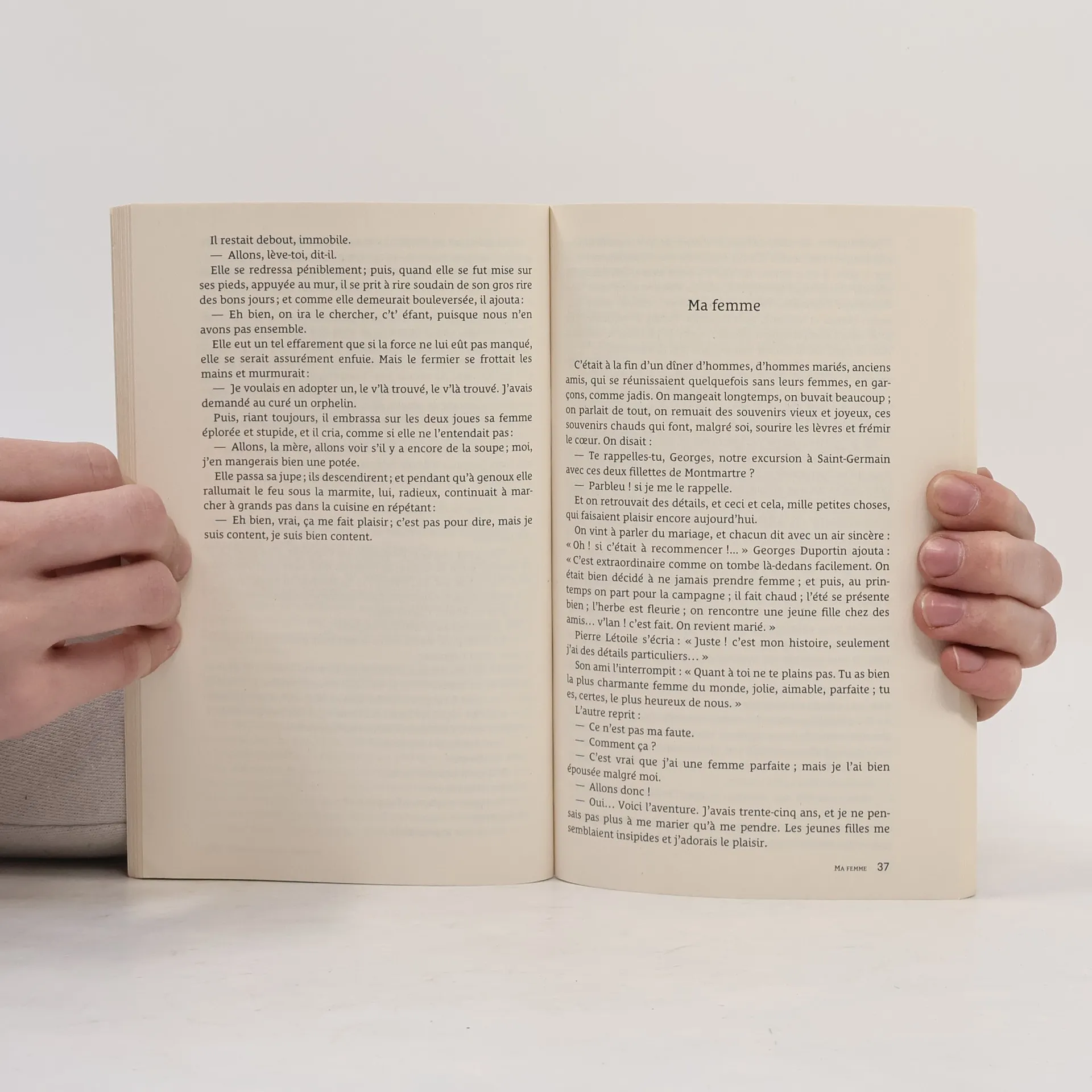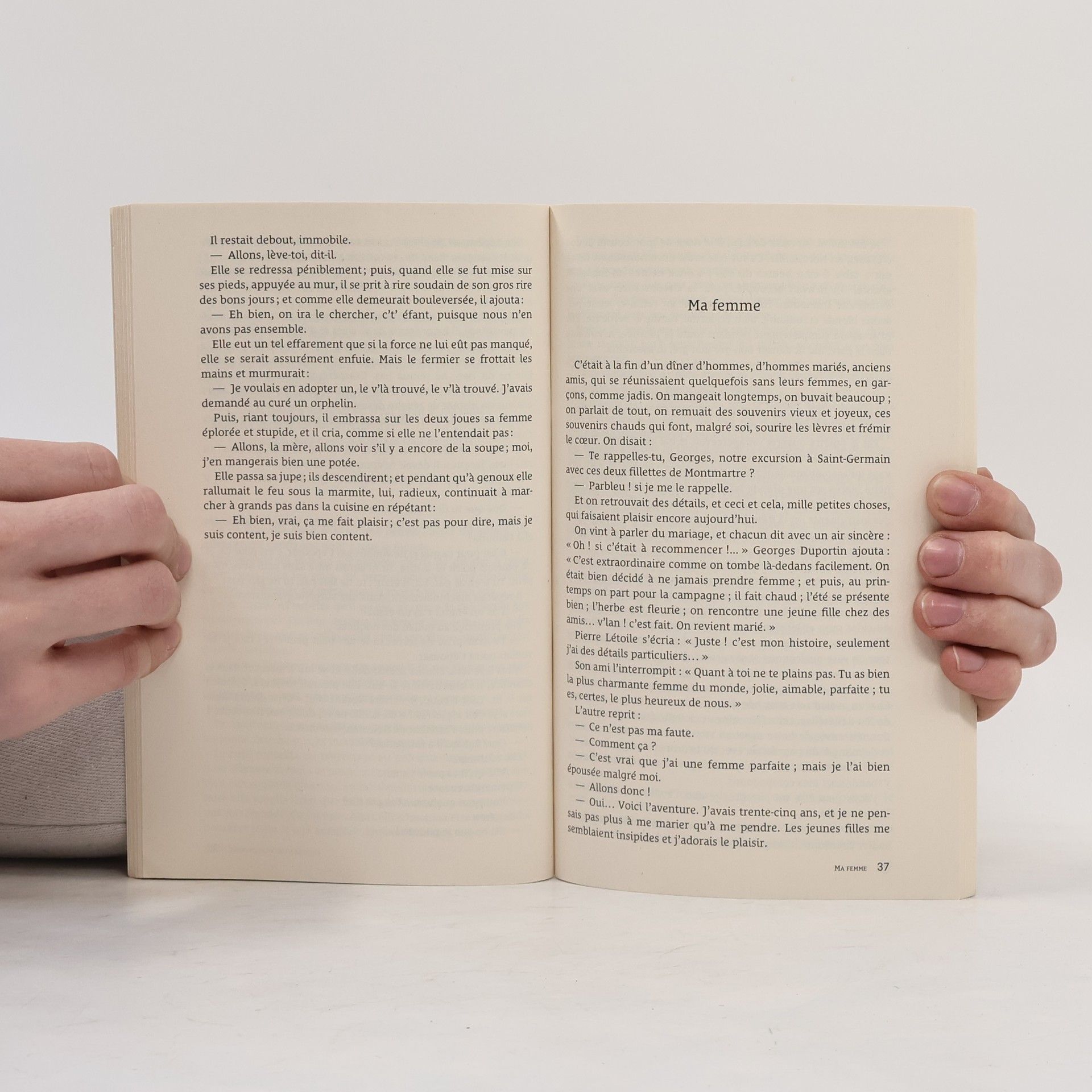 Tout près d'une petite ville, les Tuvache et les Vallin, paysans tranquilles et pauvres, vivent côte à côte dans la plus grande harmonie, confondant même, à l'occasion, leurs enfants. Mais quand Mme d'Hubières, qui s'est prise d'affection pour les deux cadets, propose d'en "prendre" un pour l'élever dans l'opulence, rien ne va plus et l'amitié entre les deux ménages vacille.11 nouvelles de Maupassant : - Aux champs- Le Papa de Simon- Histoire d'une fille de ferme- Ma femme- Le Retour- Divorce- Le Vieux- La Ficelle- Une vendetta- La Main- Le Bonheur