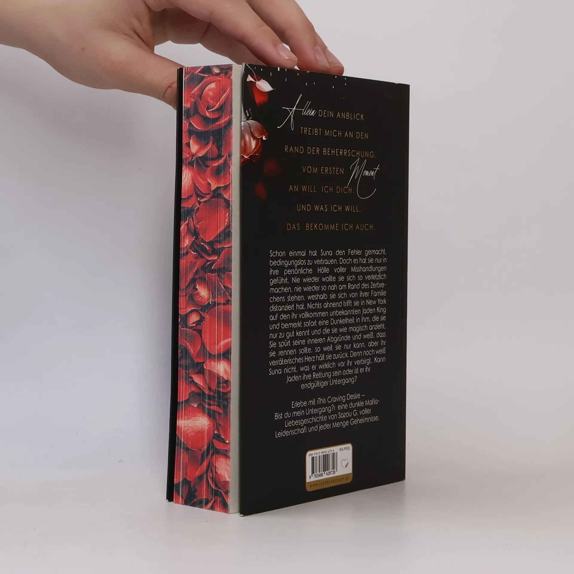 +++ Aufwendig gestaltete Ausgabe mit limitiertem Farbschnitt +++ *Die erste Auflage beinhaltet einen wunderschönen Farbschnitt, nur solange der Vorrat reicht* Allein dein Anblick treibt mich an den Rand der Beherrschung. Vom ersten Moment an will ich dich. Und was ich will, das bekomme ich auch. Schon einmal hat Suna den Fehler gemacht, bedingungslos zu vertrauen. Doch es hat sie nur in ihre persönliche Hölle voller Misshandlungen geführt. Nie wieder wollte sie sich so verletzlich machen, nie wieder so nah am Rand des Zerbrechens stehen, weshalb sie sich von ihrer Familie distanziert hat. Nichts ahnend trifft sie in New York auf den ihr vollkommen unbekannten Jaden King und bemerkt sofort eine Dunkelheit in ihm, die sie nur zu gut kennt und die sie wie magisch anzieht. Sie spürt seine inneren Abgründe und weiß, dass sie rennen sollte, so weit sie nur kann, aber ihr verräterisches Herz hält sie zurück. Denn noch weiß Suna nicht, was er wirklich vor ihr verbirgt. Kann Jaden ihre Rettung sein oder ist er ihr endgültiger Untergang? Erlebe mit ›This Craving Desire – Bist du mein Untergang?‹ eine dunkle Mafia-Liebesgeschichte von Sazou G. voller Leidenschaft und jeder Menge Geheimnisse. Überarbeitete Neuauflage