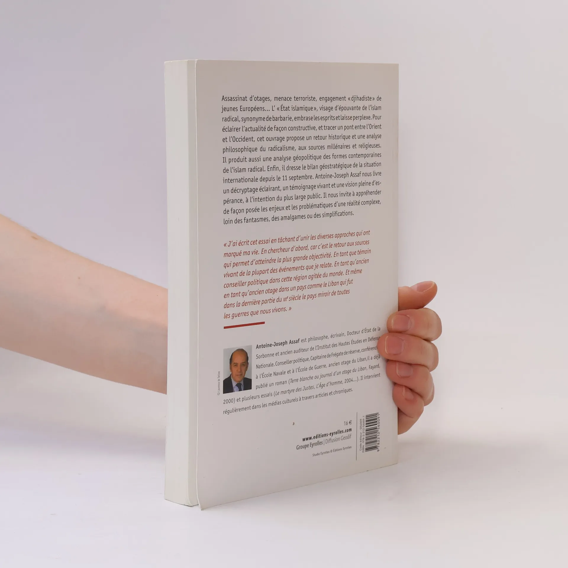 Assassinat d'otages, menace terroriste, engagement "djihadiste" de jeunes Européens... L' "État islamique", visage d'épouvante de l'islam radical, synonyme de barbarie, embrase les esprits et laisse perplexe. Pour éclairer l'actualité de façon constructive, et tracer un pont entre l'Orient et l'Occident, cet ouvrage propose un retour historique et une analyse philosophique du radicalisme, aux sources millénaires et religieuses. Il produit aussi une analyse géopolitique des formes contemporaines de l'islam radical. Enfin, il dresse le bilan géostratégique de la situation internationale depuis le 11 septembre. Antoine-Joseph Assaf nous livre un décryptage éclairant, un témoignage vivant et une vision pleine d'espérance, à l'intention du plus large public. Il nous invite à appréhender de façon posée les enjeux et les problématiques d'une réalité complexe, loin des fantasmes, des amalgames ou des simplifications. "J'ai écrit cet essai en tâchant d'unir tes diverses approches qui ont marqué ma vie. En chercheur d'abord, car c'est te retour aux sources qui permet d'atteindre ta plus grande objectivité. En tant que témoin vivant de la plupart des événements que je relate. En tant qu'ancien conseiller politique dans cette région agitée du monde. Et même en tant qu'ancien otage dans un pays comme le Liban qui fut dans la dernière partie du XXe siècle le pays miroir de toutes les guerres que nous vivons."