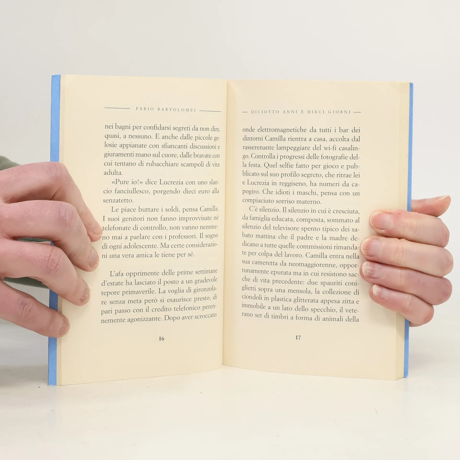 Qualcuno ha piazzato una bomba a orologeria nella spensierata vita di Camilla.Il secondo romanzo breve della “Quadrilogia della famiglia”. Con Fabio Bartolomei si ride in maniera intelligente.Viziata dai genitori, spalleggiata dalle amiche del cuore, blandita dai follower, Camilla è impreparata ad affrontare i rovesci della vita. Se ne renderà conto nel giorno del suo diciottesimo compleanno quando un’imprevedibile e scioccante scoperta la costringerà ad avventurarsi fuori dall’orbita protetta del suo mondo e a mettere alla prova le sue amicizie, le sue ingenue certezze sulla vita e tutti i limiti degli insegnamenti ricevuti.Diciotto anni e dieci giorni, il secondo romanzo breve della “Quadrilogia della famiglia”, è una commedia incentrata su un esilarante viaggio intrapreso per rimettere insieme i pezzi di una famiglia allo sfascio che, disavventura dopo disavventura, diventa l’occasione per mettere in luce e celebrare il primo esitante passo nell’età adulta.