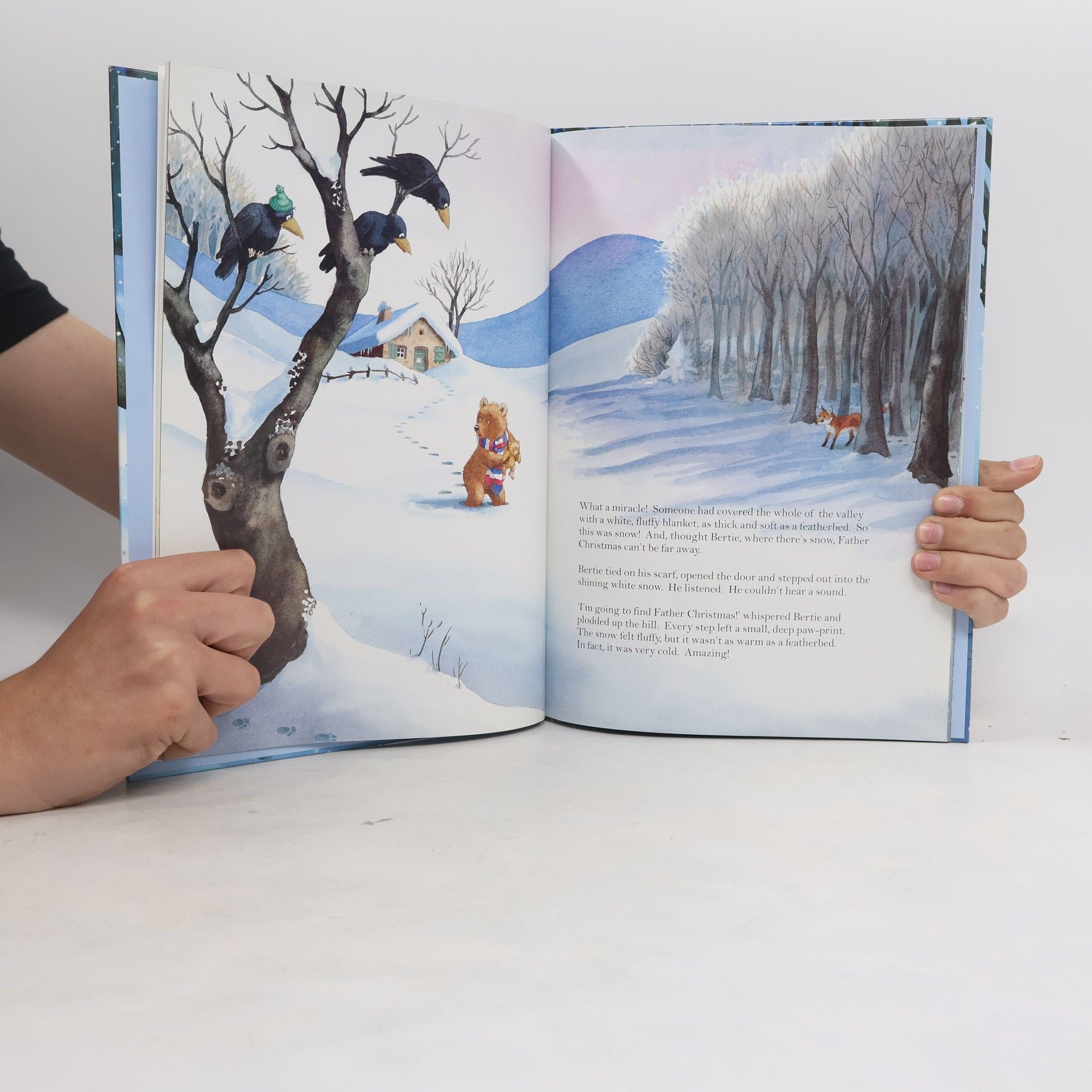 Determined to find out what Santa Claus looks like, a little bear sleeps as much as he can before winter hibernation, wakes himself up with his mother's alarm clock, and sets out into the snowy countryside.
