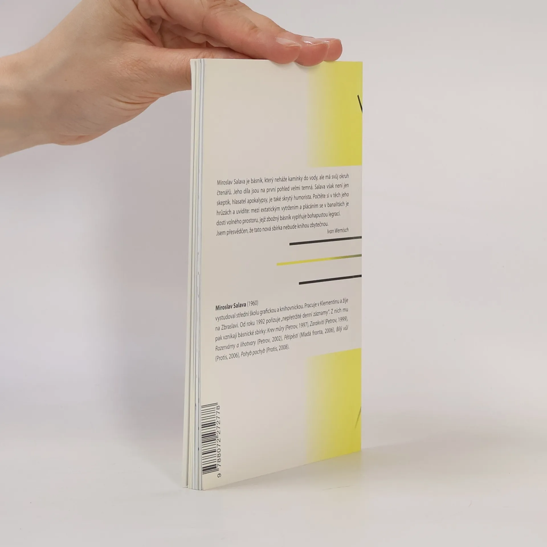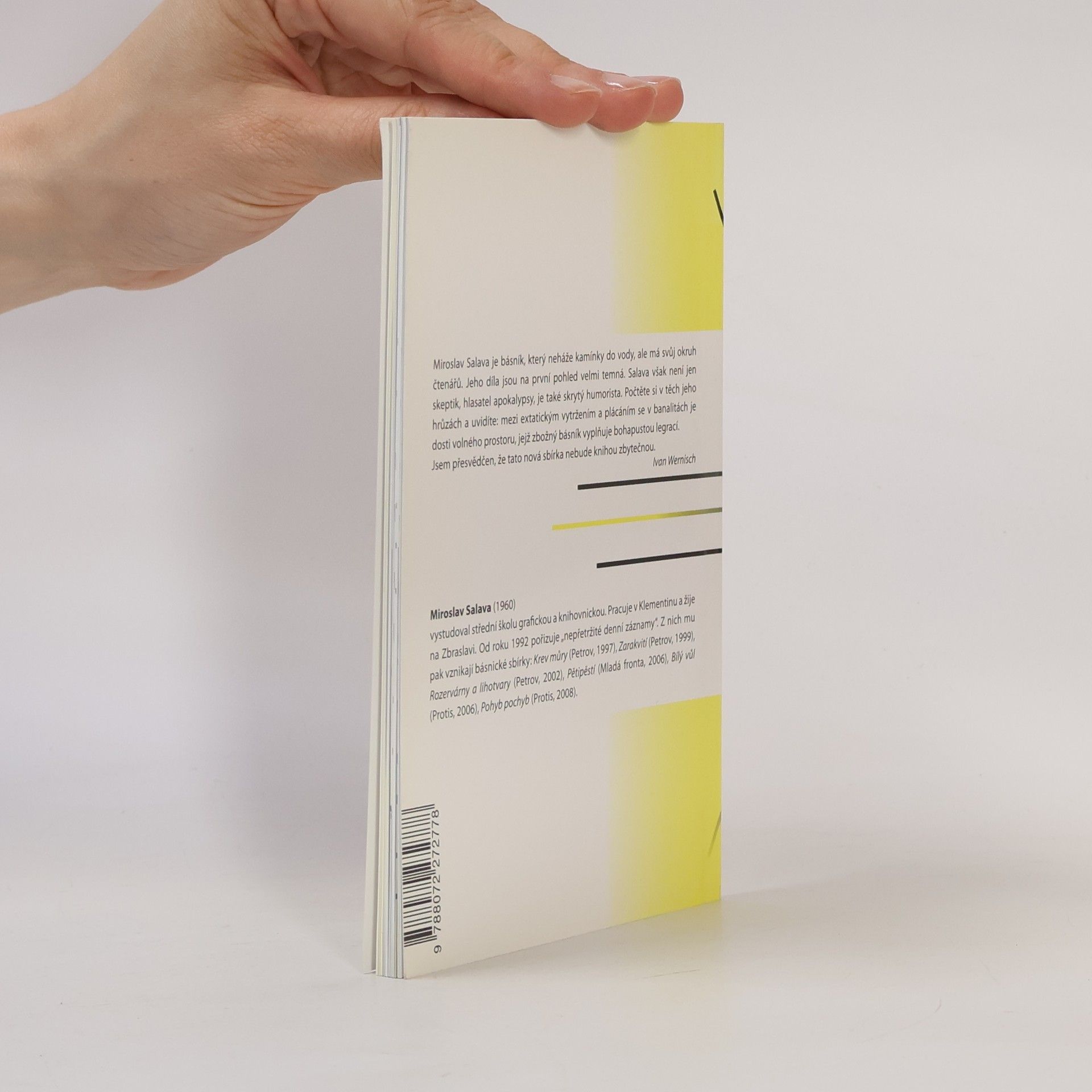 „Miroslav Salava je básník, který neháže kamínky do vody, ale má svůj okruh čtenářů. Jeho díla jsou na první pohled velmi temná. Salava však není jen skeptik, hlasatel apokalypsy, je také skrytý humorista. Počtěte si v těch jeho hrůzách a uvidíte: mezi extatickým vytržením a plácáním se v banalitách je dosti volného prostoru, jejž zbožný básník vyplňuje bohapustou legrací. Jsem přesvědčen, že tato nová sbírka nebude knihou zbytečnou.“ *Ivan Wernisch*