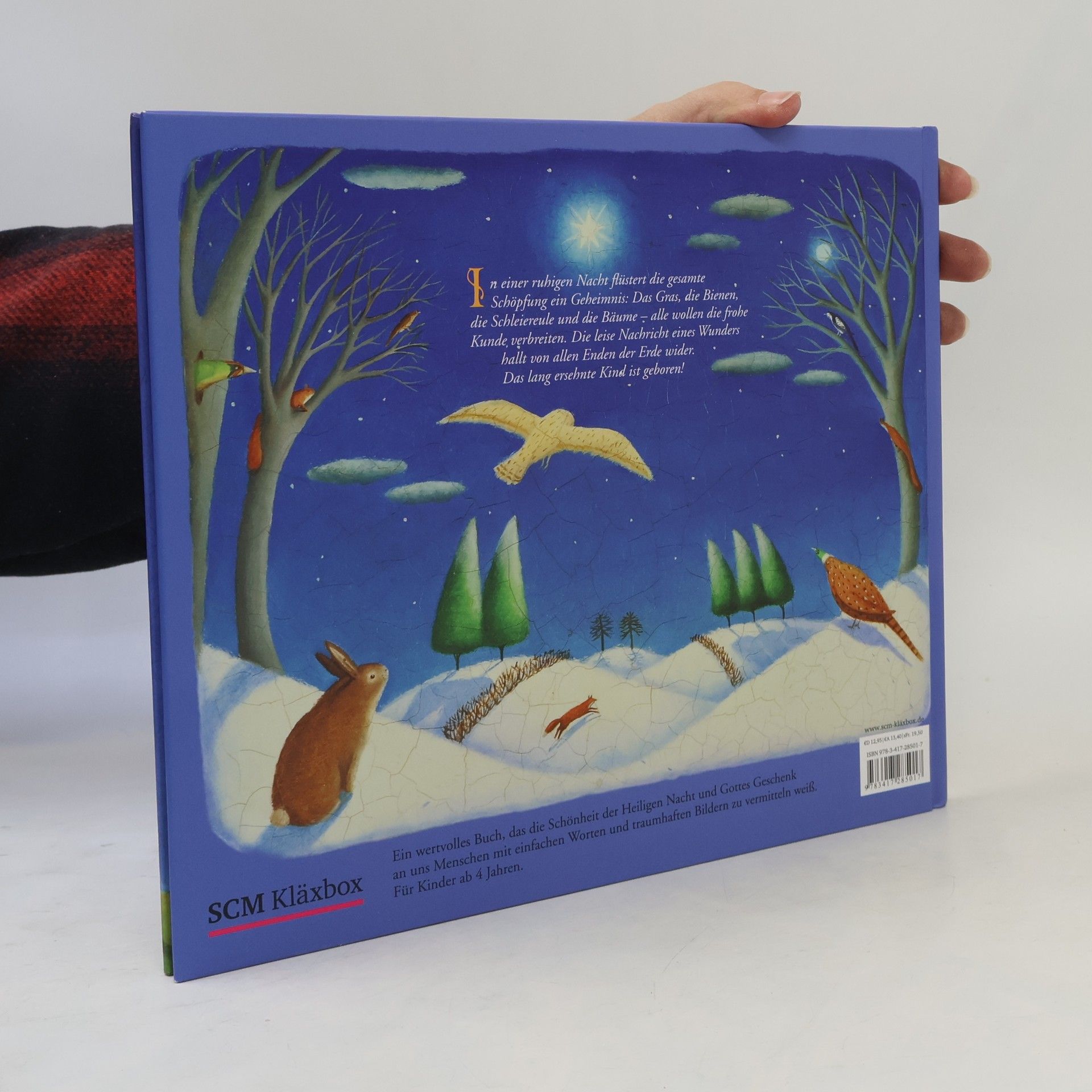 „Es ist Zeit! Es ist Zeit! “ ruft der Himmel zu den Meeren, die es auf donnernden Wellen zu den großen, weißen Walen tragen, die es dann den Seesternen in der Tiefe singen. In einer ruhigen Nacht flüstert die gesamte Schöpfung ein Geheimnis: Das Gras, die Bienen, die Rotkehlchen und die Bäume - alle wollen die gute Kunde verbreiten. Die leise Nachricht von einem Wunder hallt von allen Enden der Erde wider. Das lang ersehnte Kind ist geboren! Diese Weihnachtsgeschichte der anderen Art besticht durch ihre großflächigen, modernen Illustrationen. Ein echter Hingucker!