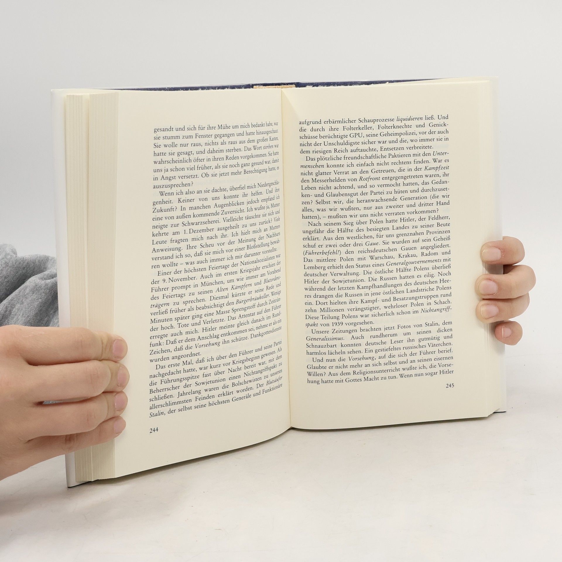Though called an autobiographical novel, relates the author's childhood and youth in the then-German town of Kreuzburg during the Hitler years.