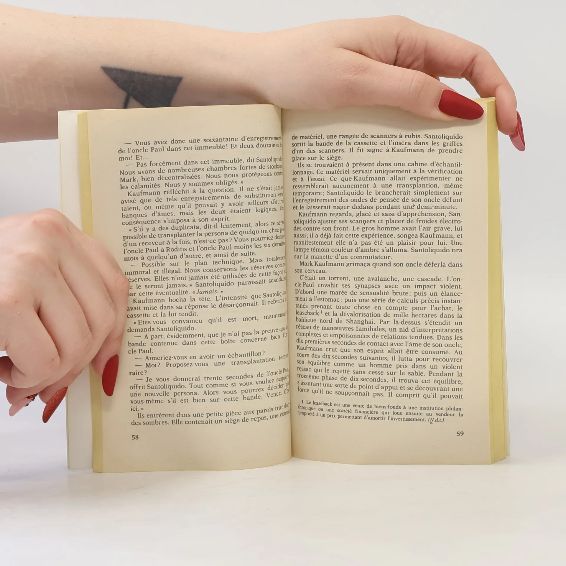 Immortality is just a dream, but with the Scheffing process, the extremely wealthy can purchase the next best thing. For an exorbitant fee, the Scheffing Institute will make a copy of your mind's persona, hold it in storage until death, then transplant it into sublayers of the brain of a willing--& paying--host. The result for the host is immediate access to the persona's memories, knowledge, experiences & judgment. For the persona, it means full consciousness & thought-communication with the host, but without physical control of the host's body. When this futuristic tale unfolds, the brilliant, powerful multi-billionaire Paul Kaufmann has been dead for months. Institute administrator Francesco Santoliquido must make the decision of assigning Kaufmann's persona to a compatible host. With a personality as strong as Kaufmann, Santoliquido must be wary of the chance that the persona could take over the host's body--known as "going dybbuk." The only two men strong enough to control Kaufmann's persona are the ones who could benefit from it the most: Paul's nephew & current executor of the Kaufmann empire, Mark Kaufmann--& Mark's primary business rival, John Roditis of Roditis Securities. A secret struggle for possession of Kaufmann's persona takes an unexpected turn when Mark's 16-year-old daughter Risa gets involved.