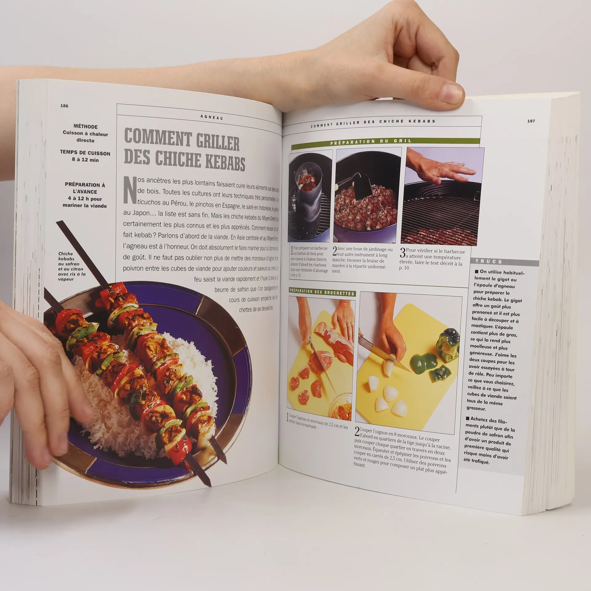 Ce livre vendu à plus de 100 000 exemplaires en français vous apprend à maîtriser les techniques de cuisson qui vous permettront de devenir un maître grillardin en peu de temps. Escalopes de poulet, brochettes variées, biftecks, côtelettes d'agneau, saucisses, hamburgers qui sortent de l'ordinaire, darnes et filets de poissons, fruits de mer, légumes, :sauces et condiments... tout y est pour faire de la cuisine en plein air une occasion de bien manger. De nombreuses photos de techniques de préparation et de cuisson accompagnent chacune des recettes. Un livre séduisant, astucieux et très accessible ! Barbecue au charbon, barbecue au gaz, tous les types de grils, contrôle de la chaleur, accessoires, préparation du gril, combustibles et bois de fumage.