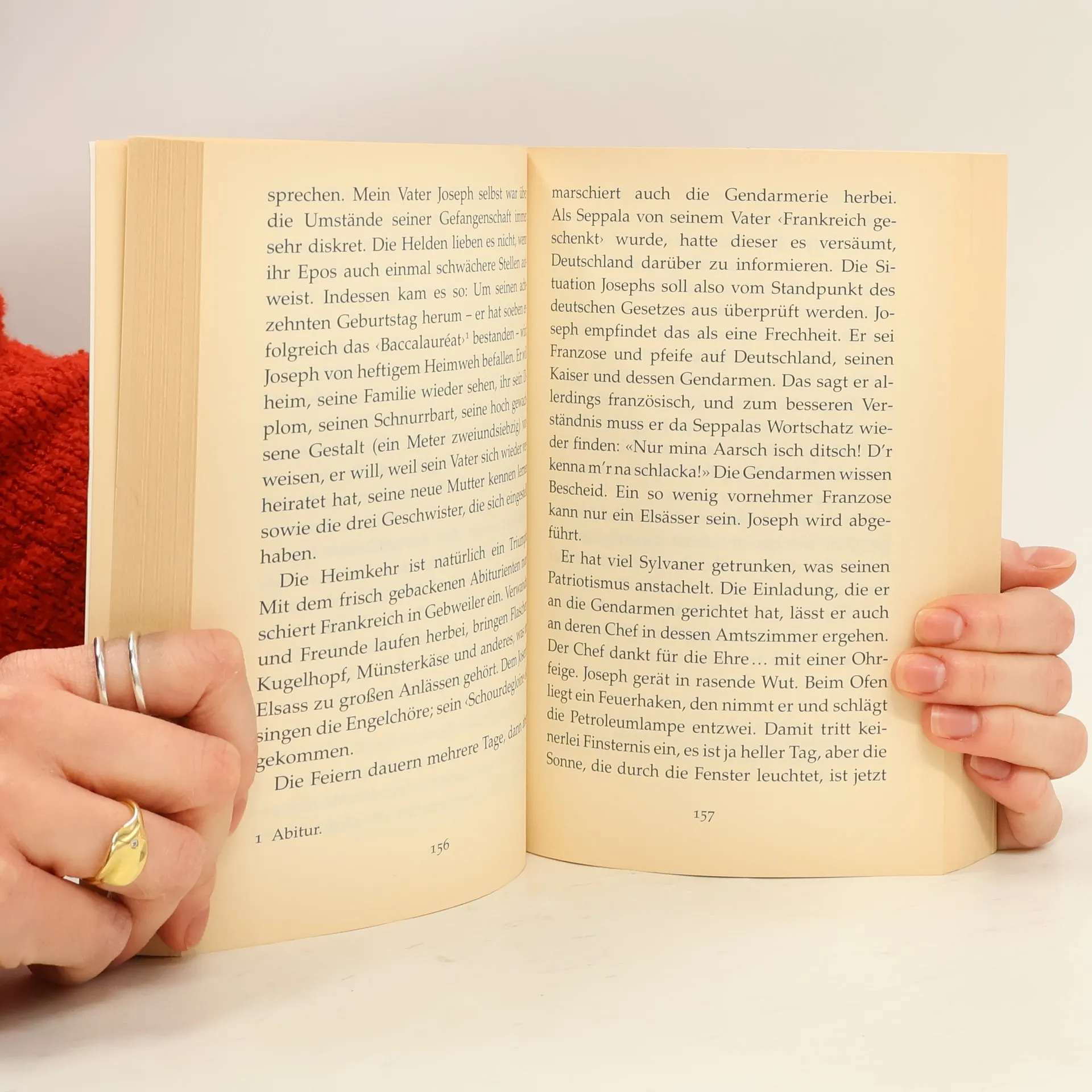 Dieser autobiographische und zugleich humorvolle Roman wurde in Frankreich in wenigen Wochen 100000mal verkauft. Aus der Perspektive eines Kindes, das nie recht weiß, welcher Nation es sich zugehörig fühlen soll, erzählt der Elsässer Jean Egen, geboren 1920, die bewegte Geschichte einer Provinz und die Wechselfälle einer Familie zwischen Frankreich und Deutschland. Der Roman wurde mit Mario Adorf in der Hauptrolle verfilmt.
