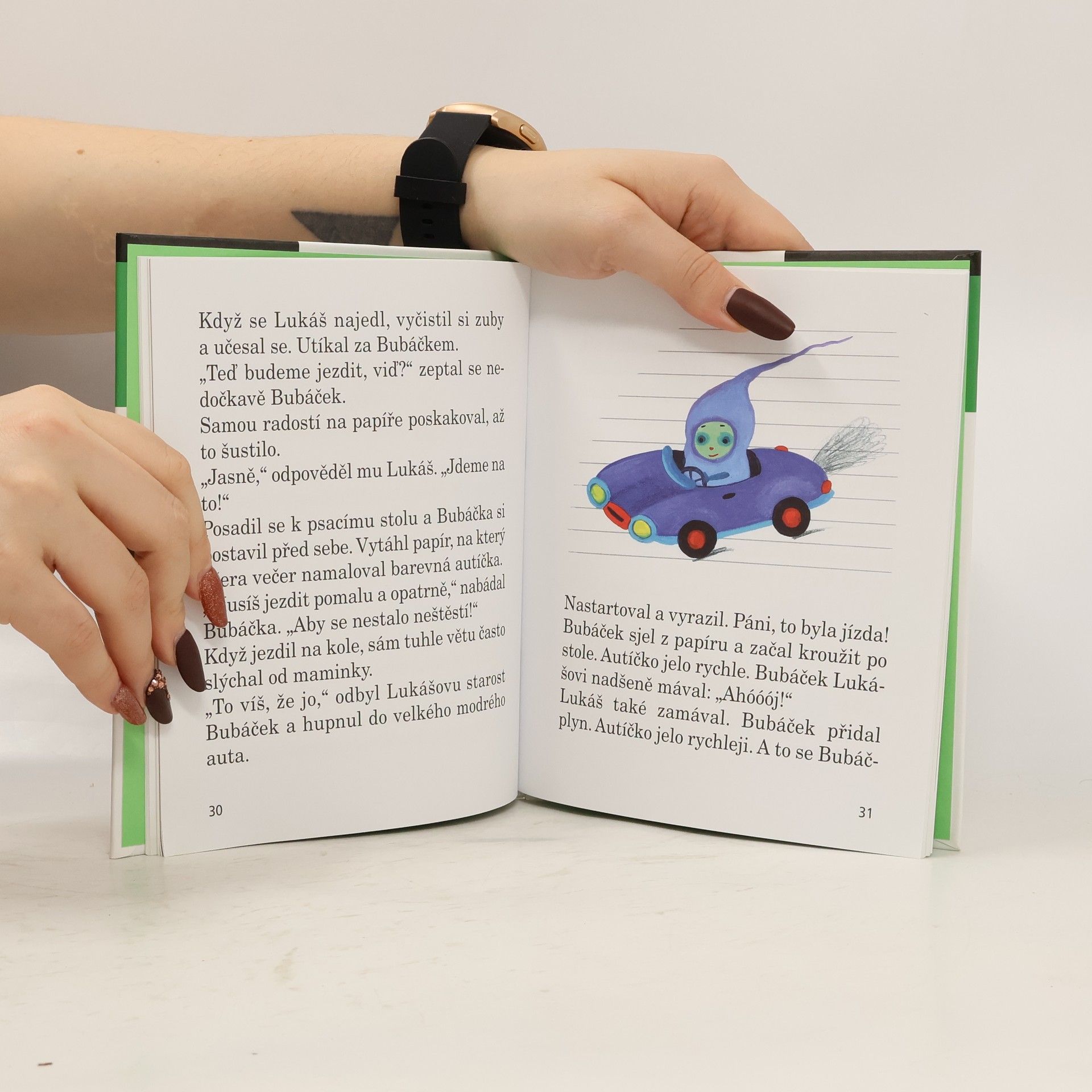 Lukáš má rád pohádky o strašidlech. Ale všechny už mu maminka před spaním vyprávěla. Co teď? Musí vymyslet nějakou novou – o Bubáčkovi. Tatínek ho Lukášovi pak pěkně nakreslil. Když se však Lukáš druhý den ráno probudí, Bubáček je pryč! Večer, když smutný Lukáš už leží v posteli, se v pokojíčku něco šustne… Kdopak to asi je?