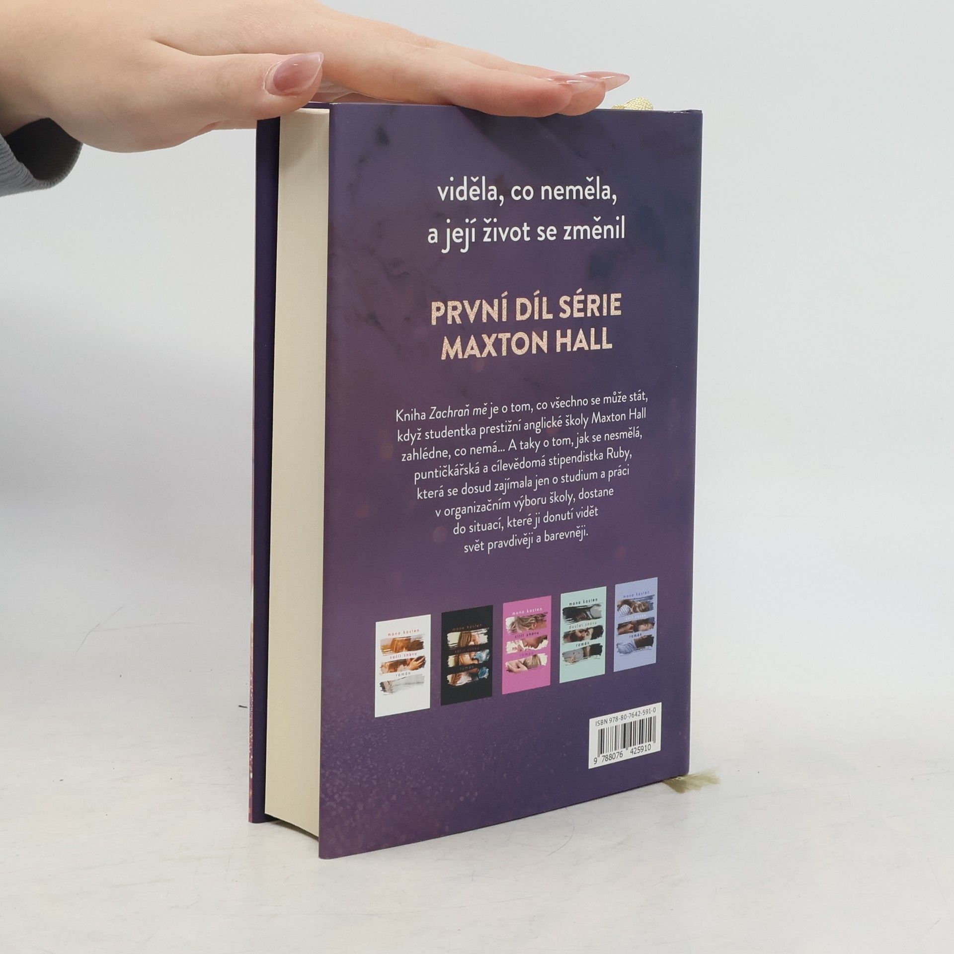 Kniha Zachraň mě je o tom, co se všechno může stát, když studentka prestižní školy Maxton Hall v Anglii uvidí, co nemá… Taky o tom, jak se nesmělá, puntičkářská a cílevědomá stipendistka Ruby, která se dosud zajímala jen o studium a práci v Organizačním výboru pro školu, dostane do situací, které ji donutí vidět svět pravdivěji a barevněji. Rodina Ruby je docela obyčejná, ale harmonická, zatímco James je dědicem starobylého oděvního impéria a příkladem zkaženého, nevychovaného mladíka, který se snaží „užít si poslední rok na střední“. Kniha je o jejich vzájemné přitažlivosti a štěstí, které spolu nacházejí, ale o které musejí bojovat, a stále znovu jim uniká. Je o tom, jaké to je, projít se po prvé kampusem oxfordské univerzity, na které Ruby od dětství touží studovat, a přáních, která se možná splní. Jaké je, když se potkají na přijímacích zkouškách na Oxford daleko od domova… Kniha vás zve do světa dramatické první lásky, romantiky studentských let a napínavých okolností, které svět Ruby a Jamese obklopují.