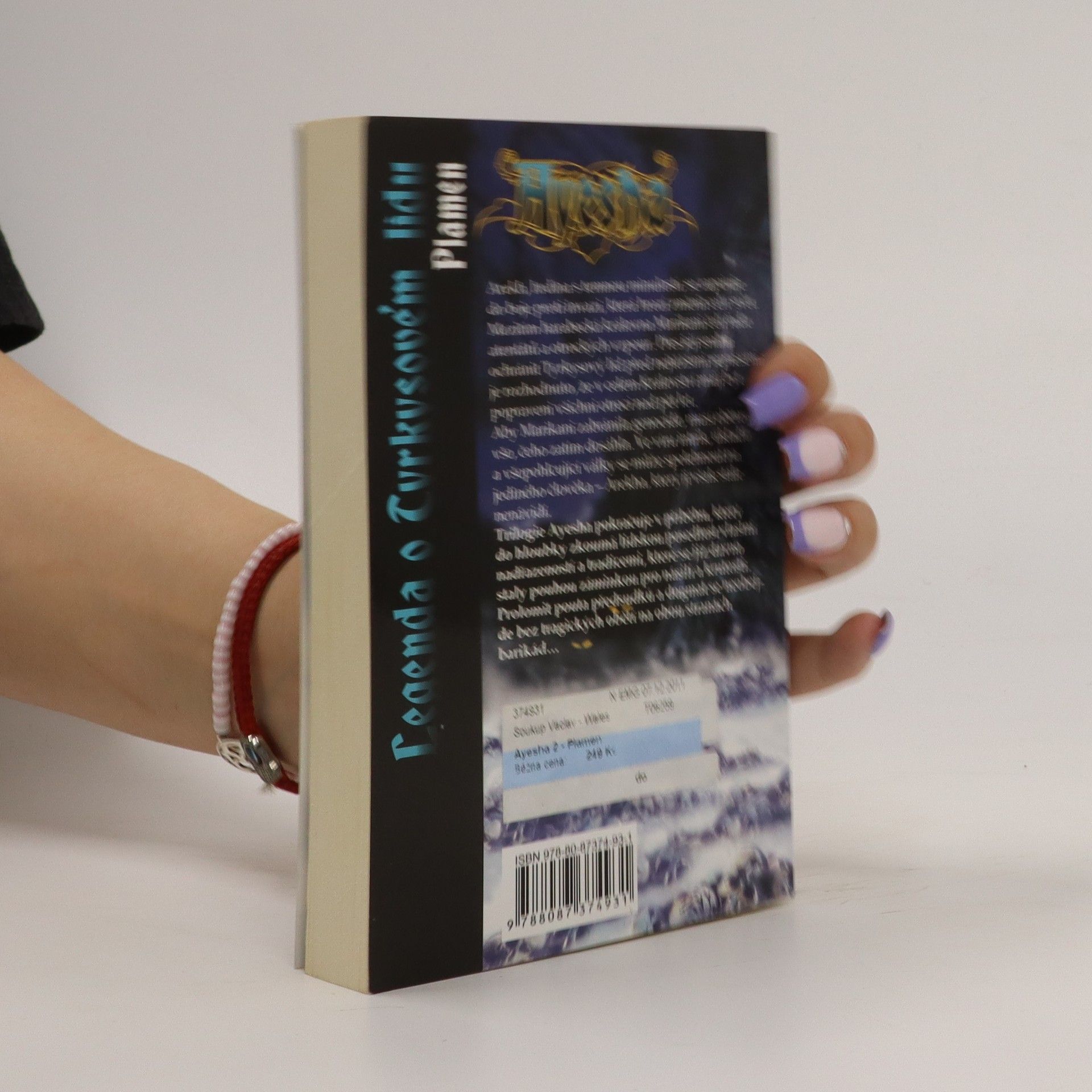 Ayesha Plamen je druhý díl trilogie Legenda o Tyrkysovém lidu, která vypráví příběh o krutém boji s nepřáteli lidskými i nelidskými, zejména však o boji proti krutým tradicím, které neváhají celé národy uvrhnout na tisíciletí do otroctví. Kniha je společným dílem autorů píšících pod pseudonymem Ange (Anne Guéro a Gérard Guéro). Příběh Marikani, následnice trůnu v království Harabeku, pokračuje. Tentokrát se Marikani stala královnou Harabeku, avšak Arekhovi (průvodce a ochránce na pouti nepřátelským územím, kterého Marikani zachránila z potápějící se galéry) se zhroutil svět. V Harabeku je potlačena vzpoura otroků, ze severozápadu Merinidové a příšerná stvoření z Propastných hlubin napadají teritorium. Země a lidé jsou vtaženi do víru událostí, budoucnost vypadá hrozivě. Avšak je tu mystická postava Ayesha, o které si Tyrkysový lid šeptá.
