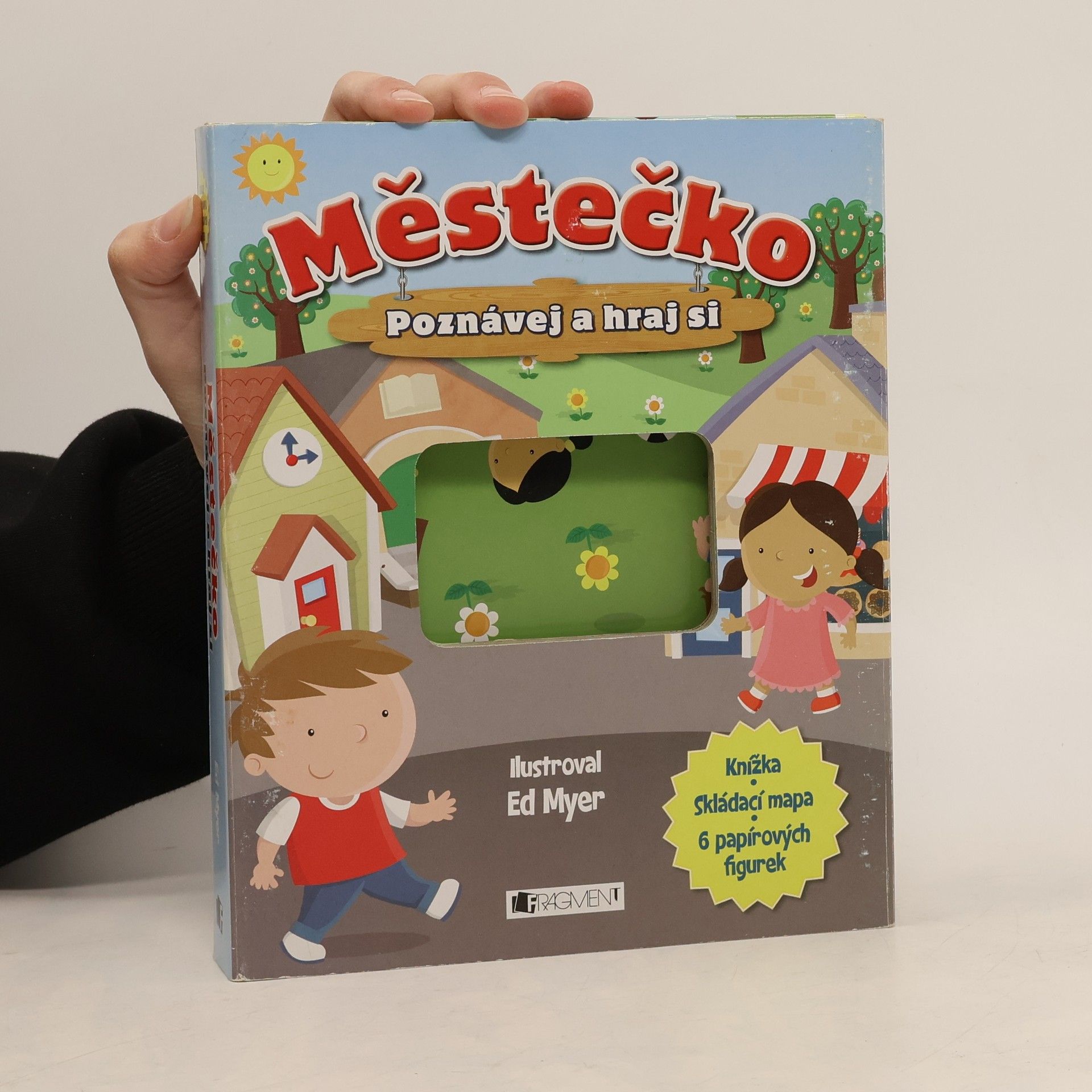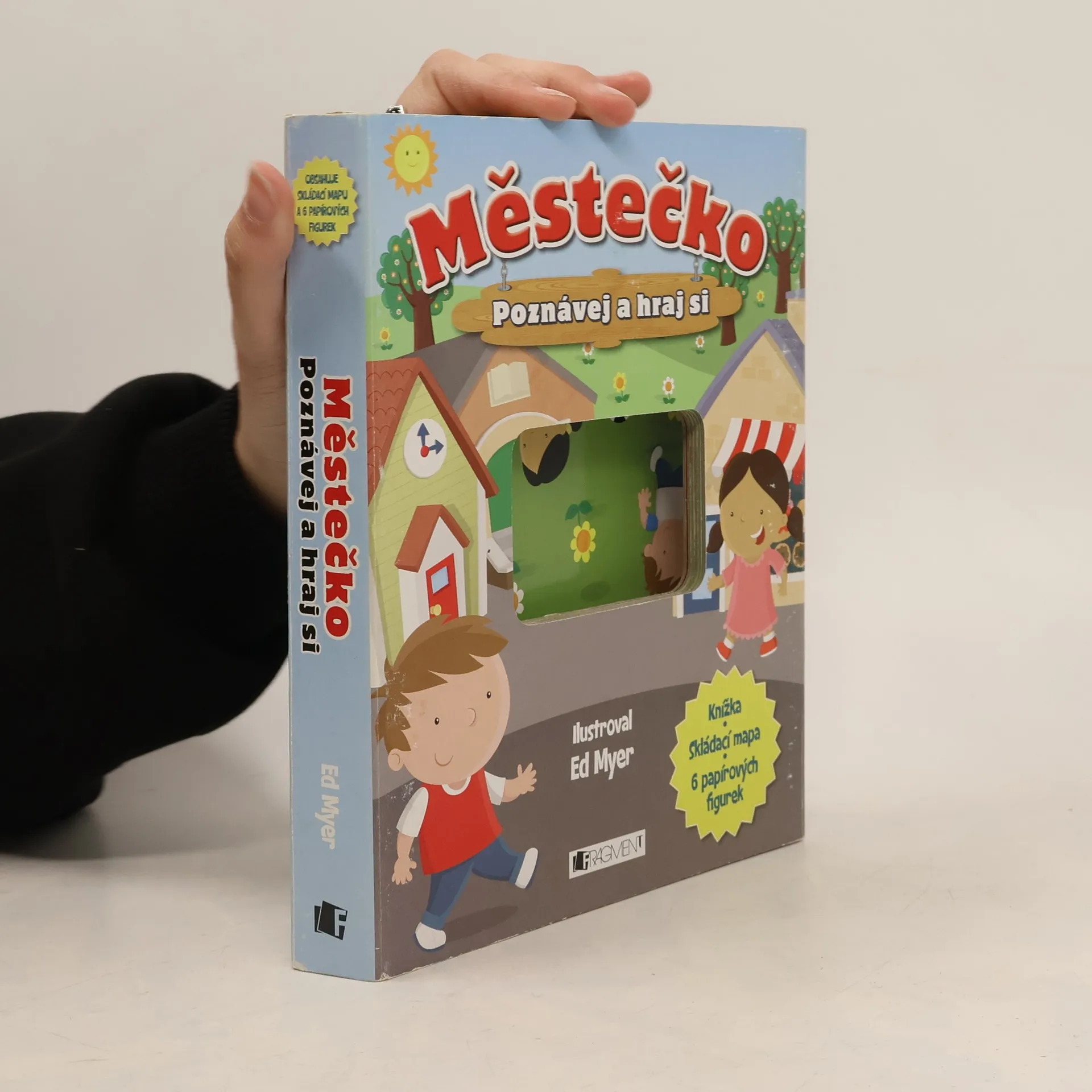 Vzhůru do městečka, kde se pořád děje spousta zábavných věcí! Navštívíš požární stanici s nablýskaným červeným hasičským vozem. V pekařství mají vždycky něco dobrého na zub. A v parku se dají hrát skvělé hry s kamarády! knížka skládací mapa 6 papírových figurek