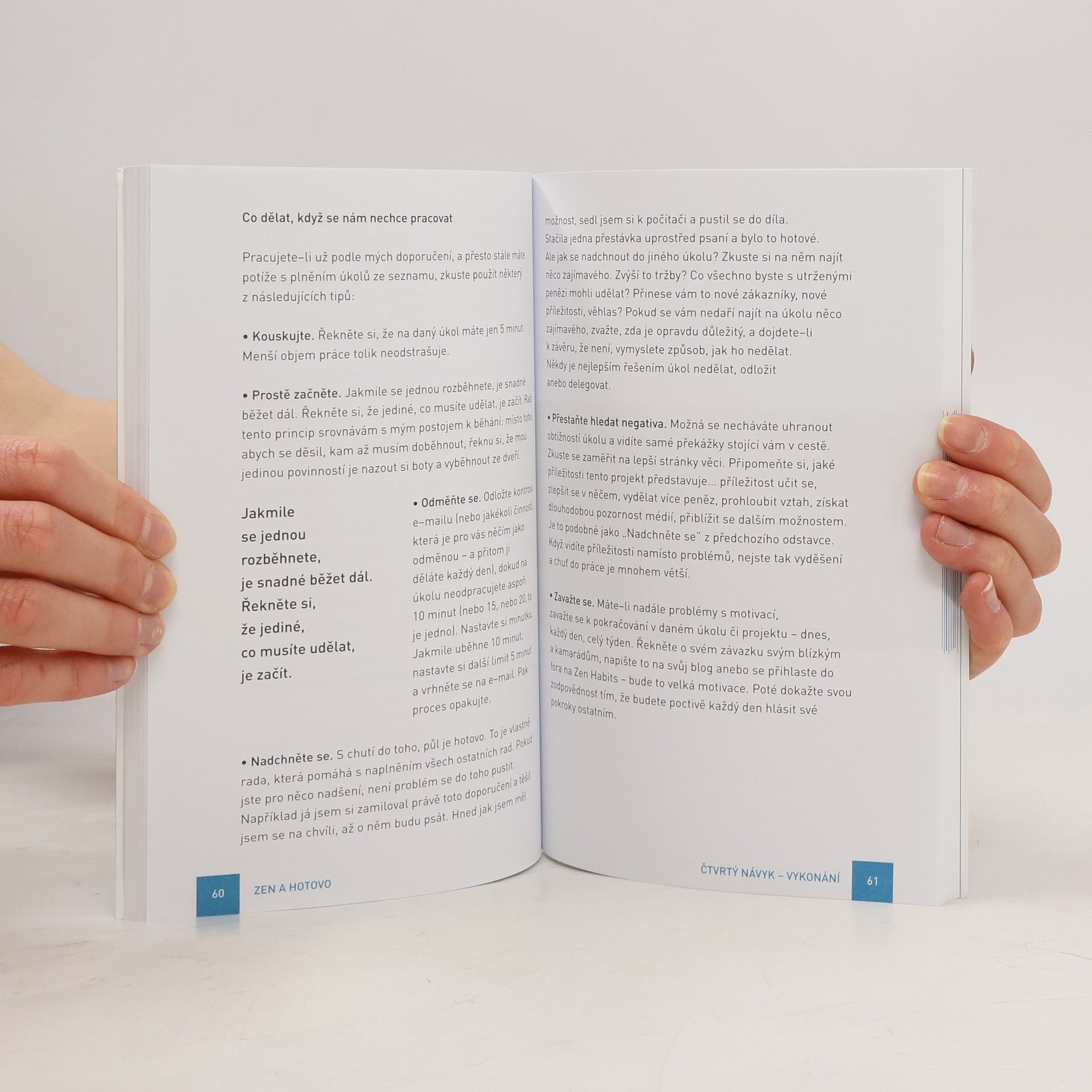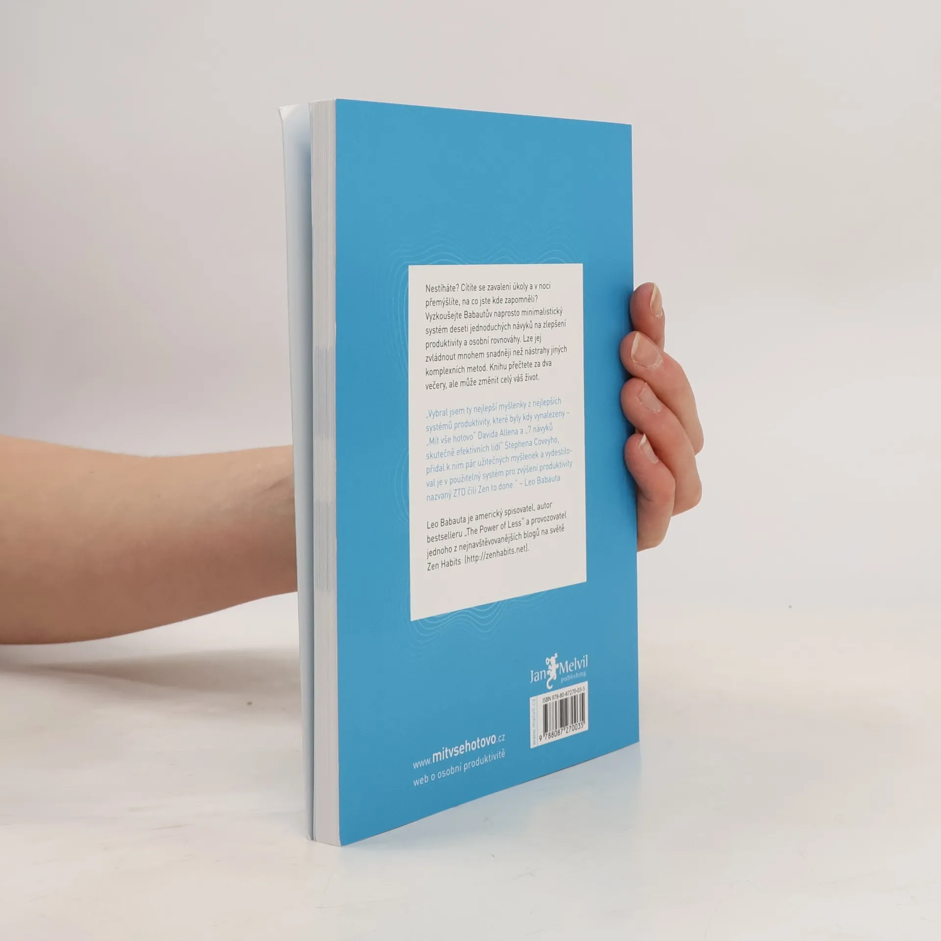 Nestíháte? Cítíte se zavaleni úkoly a v noci přemýšlíte, na co jste kde zapomněli? Vyzkoušejte Babautův naprosto minimalistický systém deseti jednoduchých návyků na zlepšení produktivity a osobní rovnováhy nazvaný Zen to done (ZTD). Lze jej zvládnout mnohem snadněji než nástrahy jiných komplexních systémů. Babauta rozvíjí ty nejlepší triky z metody GTD Davida Allena i návyků Stephena Coveyho a vytváří tak unikátně komprimovaný celek. Knihu přečtete za dva večery, ale může změnit celý váš život. Dozvíte se: * Deset klíčových návyků potřebných k tomu, abyste byli výkonní, produktivní a měli vše pod kontrolou. * Jak vytvořit a osvojit si tyto klíčové návyky. * Jednoduché tipy k osvojení. * Jak uspořádat návyky v jednoduchý systém, s nímž udržíte všechny záležitosti ve svém životě v patřičných mezích a na svém místě. * Jak zjednodušit to, co potřebujete udělat. * Minimální ZTD sestávající z pouhých čtyř návyků. O autorovi Leo Babauta je americký spisovatel, autor bestselleru „The Power of Less“ (2008) a provozovatel jednoho z nejnavštěvovanějších blogů na světě Zen Habits, který je i u nás dobře znám.