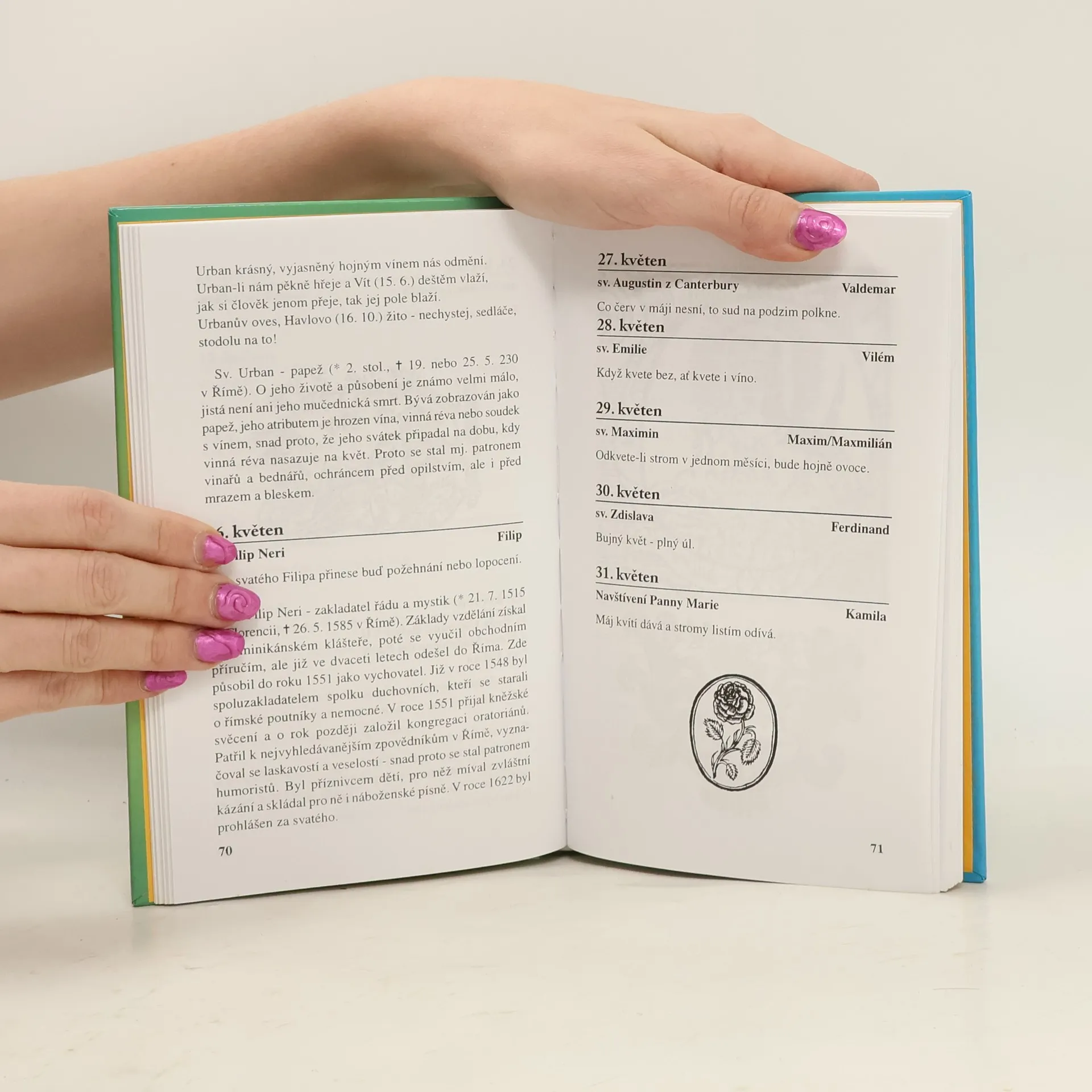 Půvabná knížka s ilustracemi Zdeňka Smetany seznámí malé čtenáře s pranostikami, tradičními zvyky a svátky od ledna do prosince (vedle Vánoc a Velikonoc se dočtou např. o letnicích), osvěží si říkanky dávných dědečků a babiček a dostanou i tipy na zajímavé zábavné činnosti pro volné chvíle. Dozvědí se také o svatých toho kterého měsíce a o tom, komu a jakou poskytují ochranu.