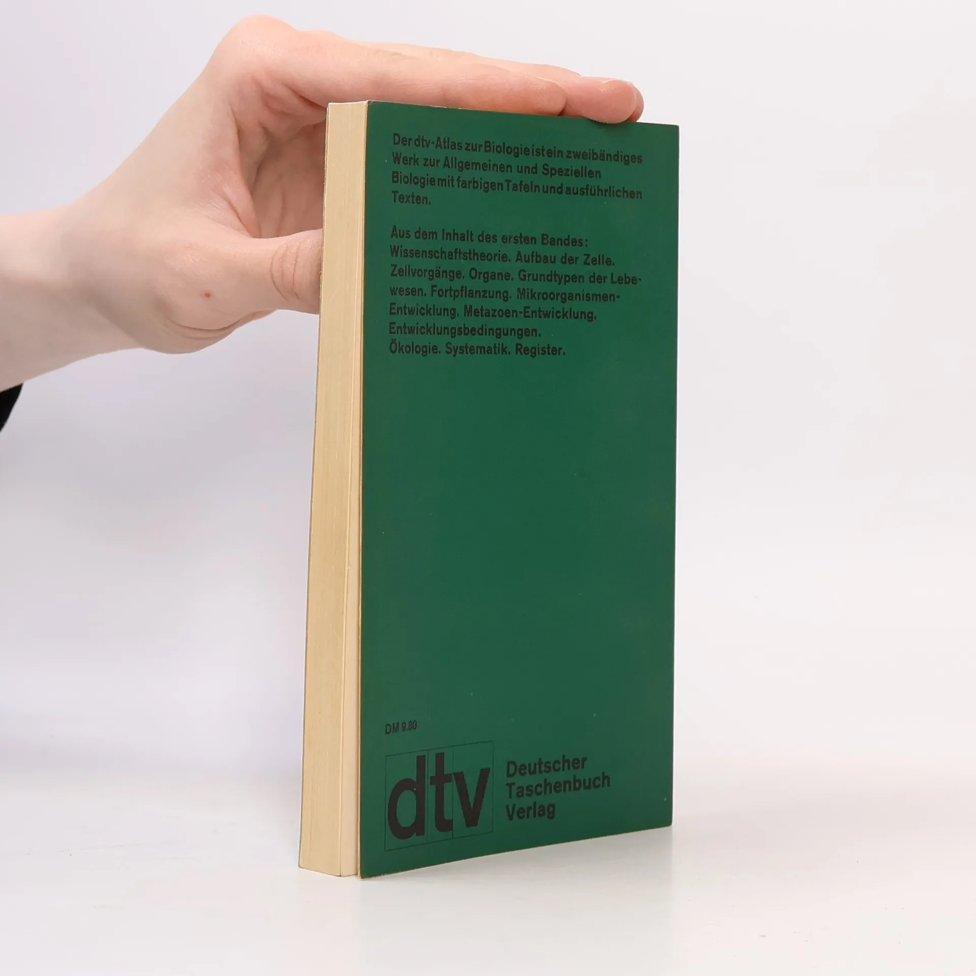 Der in drei Bänden vorliegende "dtv-Atlas Biologie" ist nicht nur eine Einführung in die Biologie, sondern zugleich auch eine Wissenschaftskunde und ein Nachschlagewerk. Der Atlas dient vor allem Schülern der gymnasialen Oberstufe und Studenten aller Naturwissenschaften als Kompendium, Leitfaden und als Hilfsmittel zur Prüfungsvorbereitung. Aber auch alle an der Wissenschaft vom Lebendigen Interessierten erhalten einen umfassenden, wissenschaftlich exakten und verständlichen Überblick. Aus dem Inhalt des ersten Bandes: Wissenschaftstheorie. Die Zelle (Eucyte). Zellvorgänge. Nichtzelluläre Systeme. Selbständige Zellen (Einzeller). Differenzierte und spezialisierte Zellen. Zellen im Gewebeverband. Organe. Grundtypen der Lebewesen. Fortpflanzung. Mikroorganismen-Entwicklung. Metazoen-Entwicklung. Entwicklungsbedingungen.