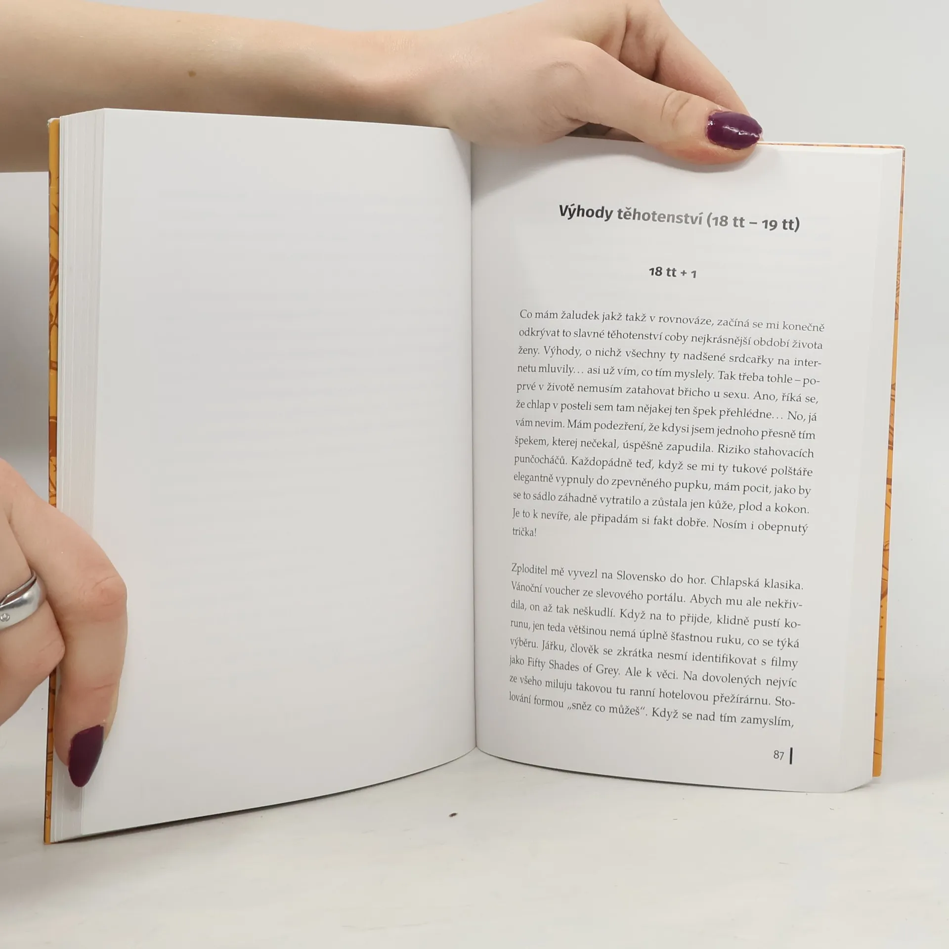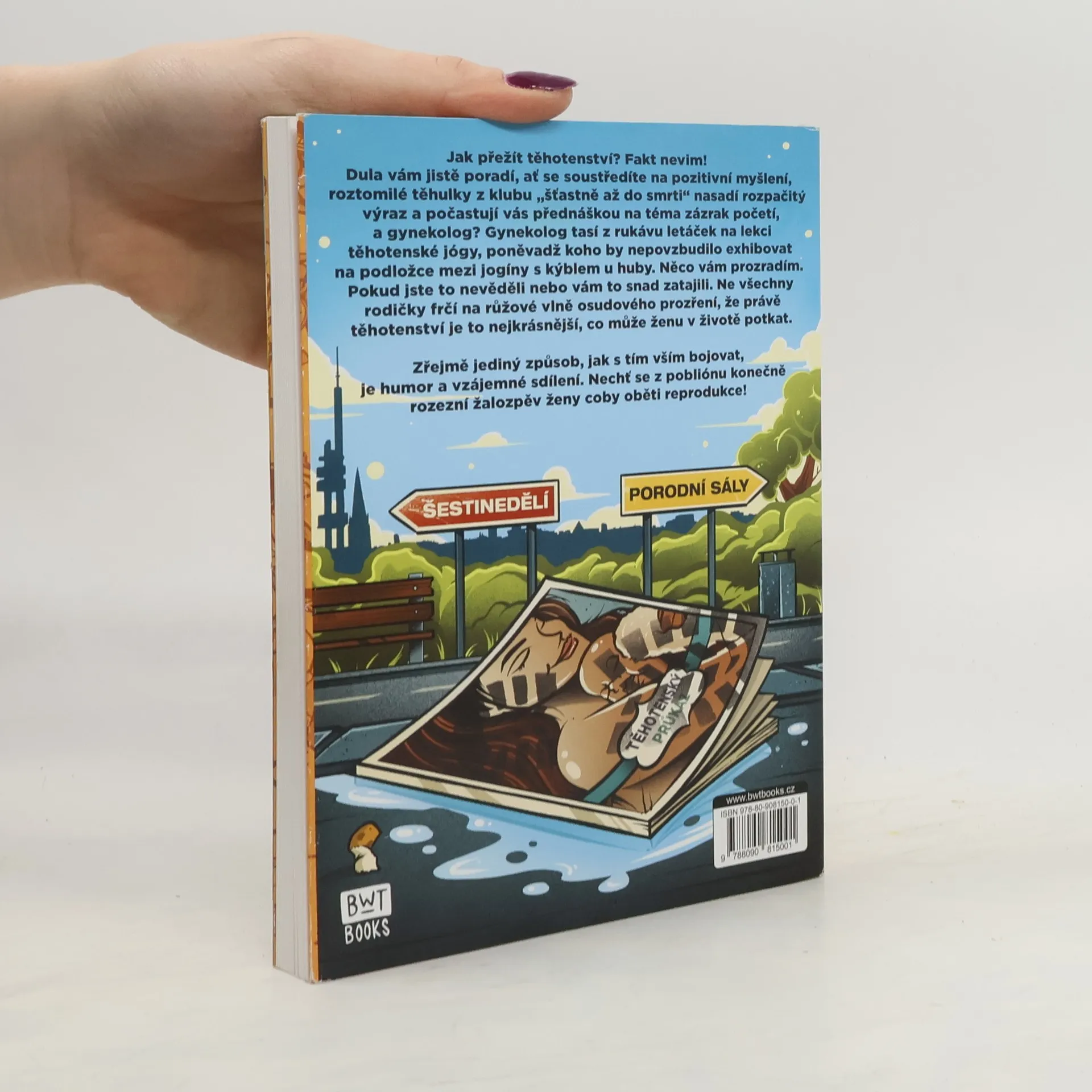 Jak přežít těhotenství? Fakt nevim! Dula vám jistě poradí, ať se soustředíte na pozitivní myšlení, roztomilé těhulky z klubu „šťastně až do smrti“ nasadí rozpačitý výraz a počastují vás přednáškou na téma zázrak početí, a gynekolog? Gynekolog tasí z rukávu letáček na lekci těhotenské jógy, poněvadž koho by nepovzbudilo exhibovat na podložce mezi jogíny s kýblem u huby. Něco vám prozradím. Pokud jste to nevěděli nebo vám to snad zatajili. Ne všechny rodičky frčí na růžové vlně osudového prozření, že právě těhotenství je to nejkrásnější, co může ženu v životě potkat. Zřejmě jediný způsob, jak s tím vším bojovat, je humor a vzájemné sdílení. Nechť se z pobliónu konečně rozezní žalozpěv ženy coby oběti reprodukce!