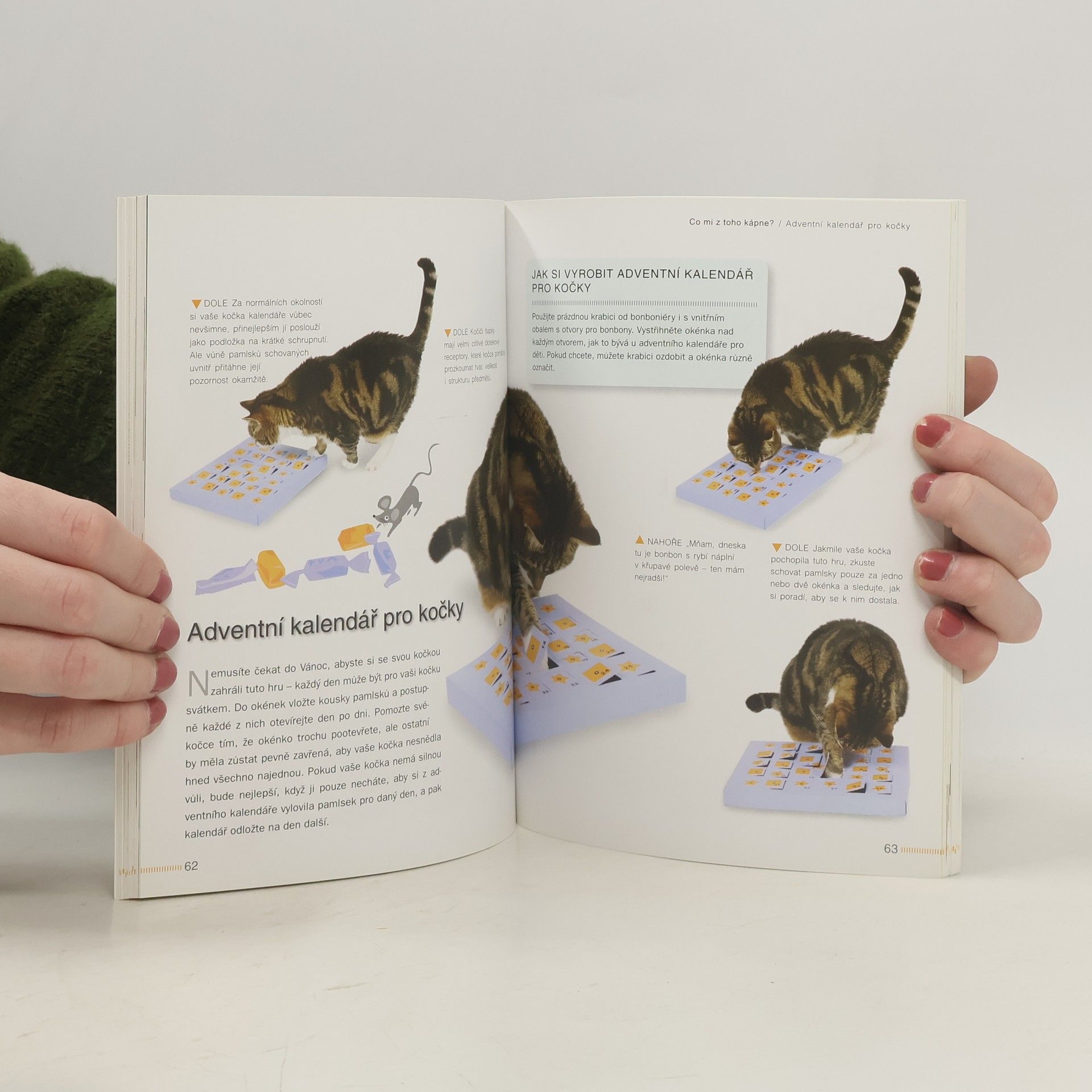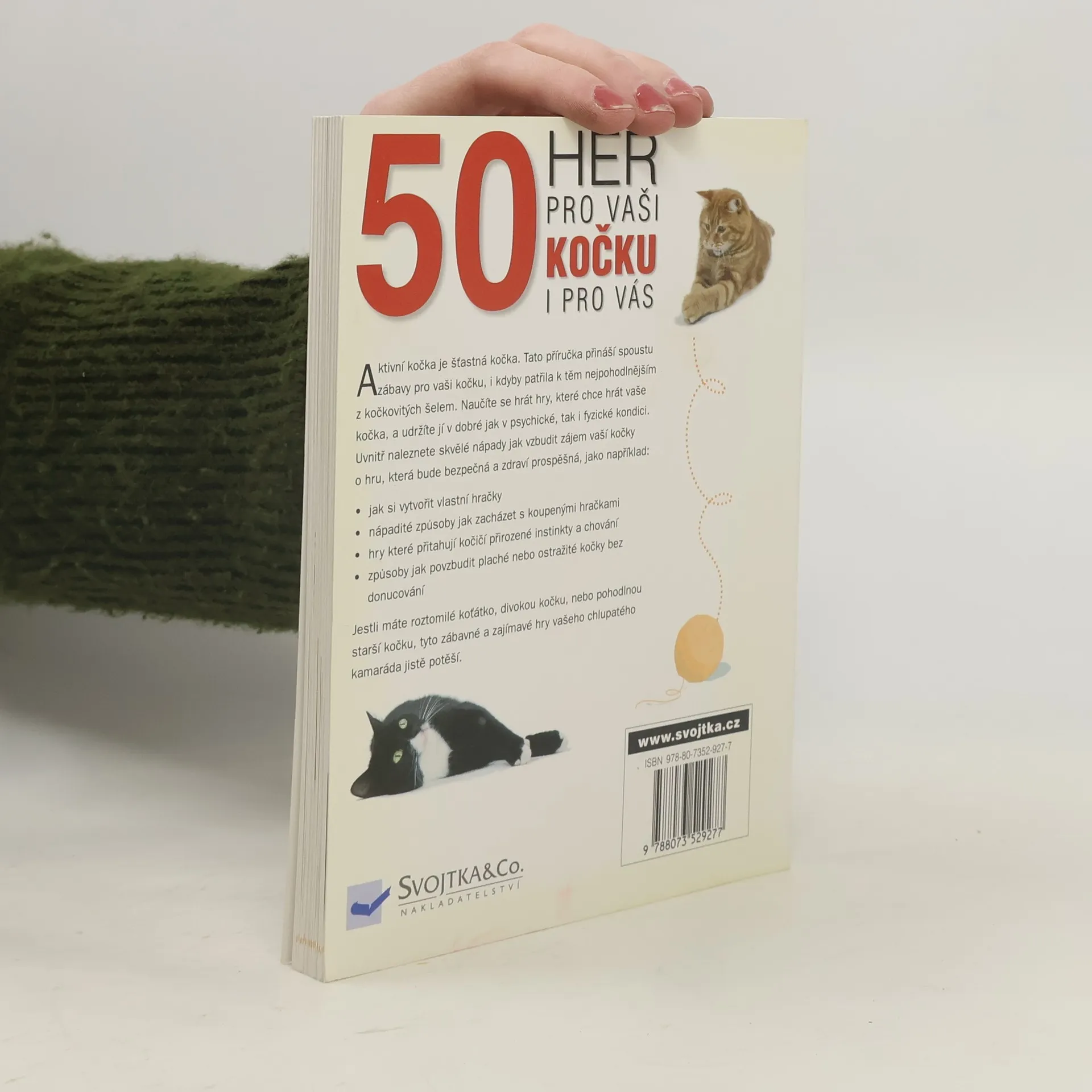 Aktivní kočka je šťastná kočka. Tato příručka přináší spoustu zábavy pro vaši kočku, i kdyby patřila k těm nejpohodlnějším z kočkovitých šelem. Naučte ji hrát hry, které chce hrát, a udržte ji v dobré jak psychické, tak i fyzické kondici. Uvnitř naleznete skvělé nápady jak vzbudit její zájem o hru, která bude bezpečná a zdraví prospěšná : jak si vytvořit vlastní hračky, nápaditých způsobech jak zacházet s koupenými hračkami. Dočtete se o hrách, které přitahují kočičí přirozené instinkty a chování, o způsobech jak povzbudit plaché nebo ostražité kočky bez donucování apod. Ať už máte roztomilé koťátko, divokou kočku, nebo pohodlnou starší kočku, tyto zábavné a zajímavé hry vašeho chlupatého kamaráda jistě potěší.
