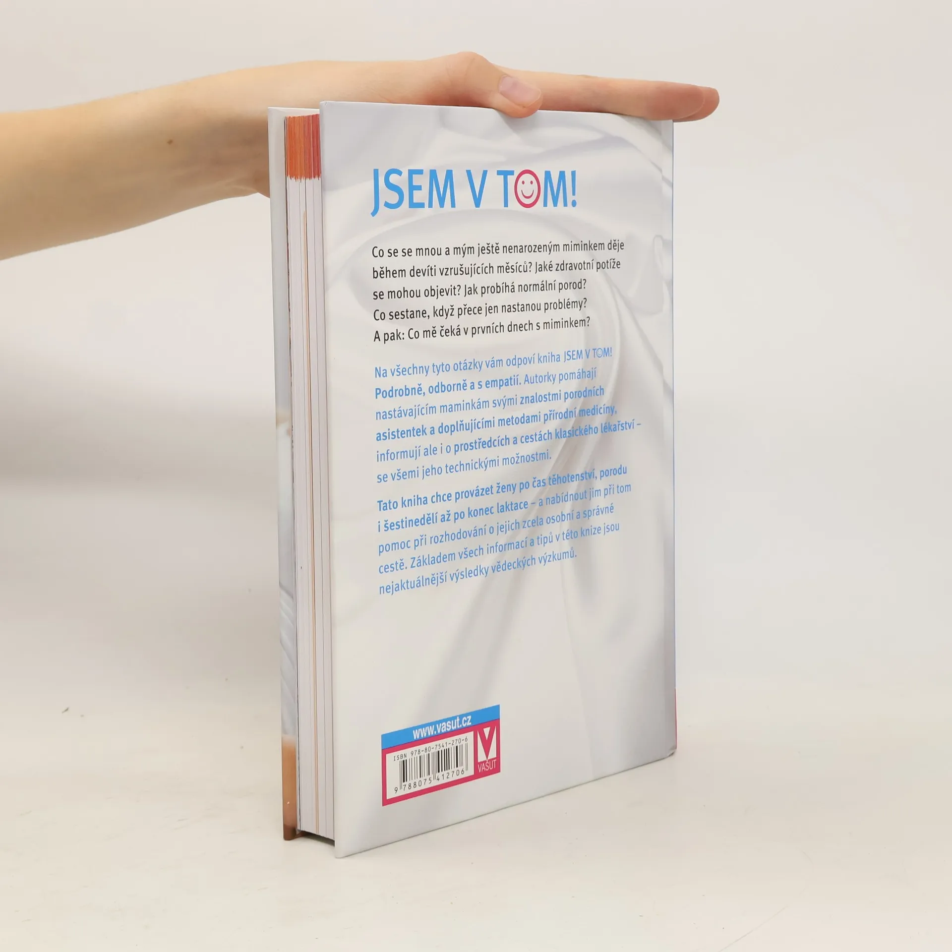Co se se mnou a mým ještě nenarozeným miminkem děje během devíti vzrušujících měsíců? Jaké zdravotní potíže se mohou objevit? Jak probíhá normální porod? Co se stane, když přece jen nastanou problémy? A pak: Co mě čeká v prvních dnech s miminkem? Na všechny tyto otázky vám odpoví kniha „Jsem v tom!“. Podrobně, odborně a s empatií. Autorky pomáhají nastávajícím maminkám svými znalostmi porodních asistentek a doplňujícími metodami přírodní medicíny, informují ale i o prostředcích a cestách klasického lékařství – se všemi jeho technickými možnostmi. Tato kniha chce provázet ženy po čas těhotenství, porodu i šestinedělí až po konec laktace – a nabídnout jim při tom pomoc při rozhodování o jejich zcela osobní a správné cestě. Základem všech informací a tipů v této knize jsou nejaktuálnější výsledky vědeckých výzkumů.