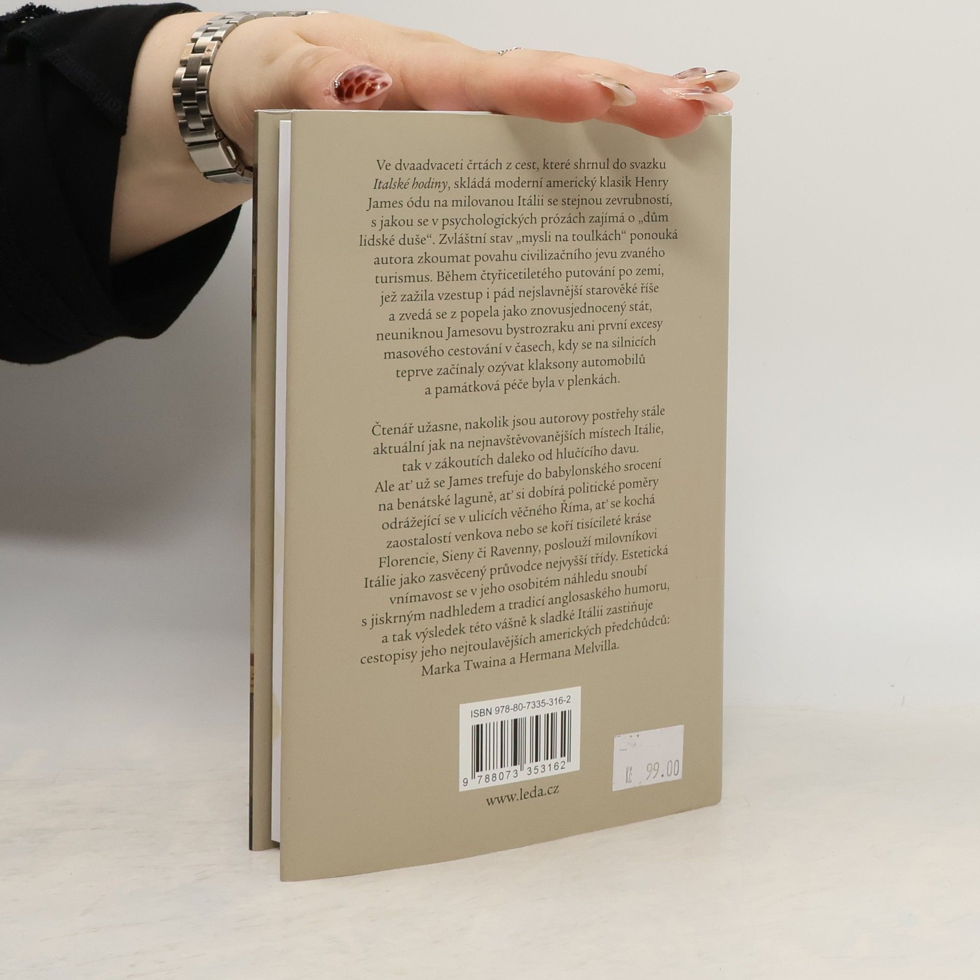 Ve dvaadvaceti črtách z cest, které shrnul do svazku Italské hodiny, skládá moderní americký klasik Henry James ódu na milovanou Itálii se stejnou zevrubností, s jakou se v psychologických prózách zajímá o „dům lidské duše“. Zvláštní stav „mysli na toulkách“ ponouká autora zkoumat povahu civilizačního jevu zvaného turismus. Během čtyřicetiletého putování po zemi, jež zažila vzestup i pád nejslavnější starověké říše a zvedá se z popela jako znovusjednocený stát, neuniknou Jamesovu bystrozraku ani první excesy masového cestování v časech, kdy se na silnicích teprve začínaly ozývat klaksony automobilů a památková péče byla v plenkách. Čtenář užasne, nakolik jsou autorovy postřehy stále aktuální jak na nejnavštěvovanějších místech Itálie, tak v zákoutích daleko od hlučícího davu. Ale ať už se James trefuje do babylonského srocení na benátské laguně, ať si dobírá politické poměry odrážející se v ulicích věčného Říma, ať se kochá zaostalostí venkova nebo se koří tisícileté kráse Florencie, Sieny či Ravenny, poslouží milovníkovi Itálie jako zasvěcený průvodce nejvyšší třídy. Estetická vnímavost se v jeho osobitém náhledu snoubí s jiskrným nadhledem a tradicí anglosaského humoru, a tak výsledek této vášně k sladké Itálii zastiňuje cestopisy jeho nejtoulavějších amerických předchůdců: Marka Twaina a Hermana Melvilla.