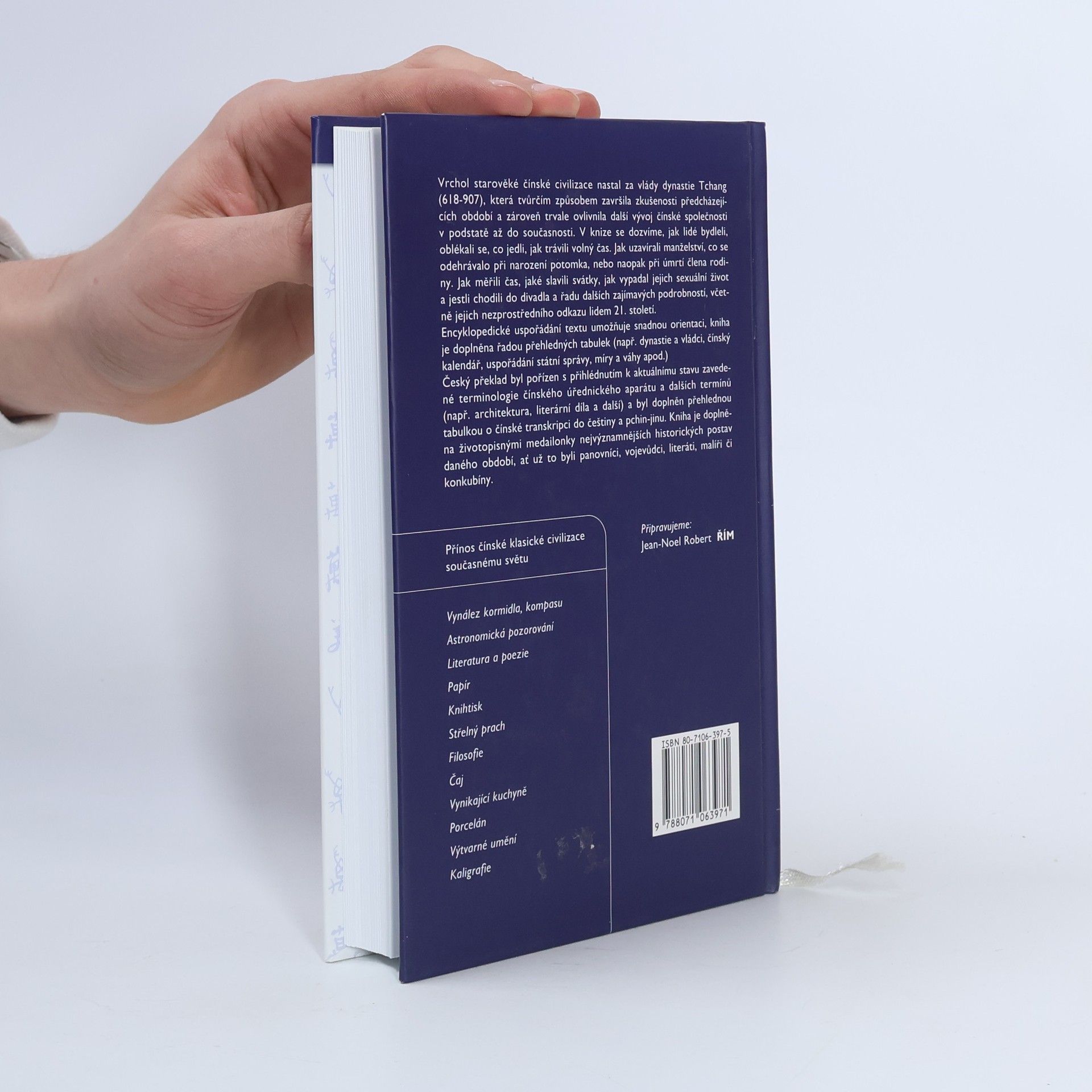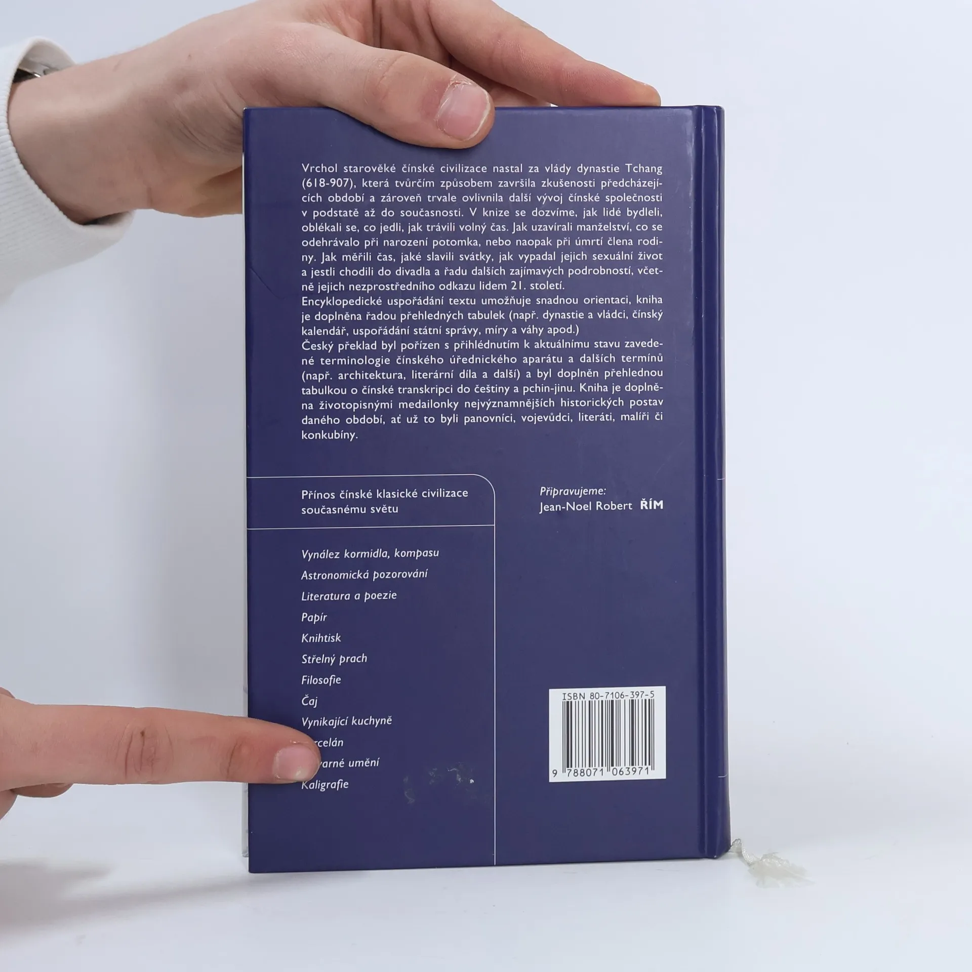 Vrchol starověké čínské civilizace nastal za vlády dynastie Tchang (618-907), která tvůrčím způsobem završila zkušenosti předcházejících období a zároveň trvale ovlivnila další vývoj čínské společnosti v podstatě až do současnosti. Encyklopedické uspořádání textu umožňuje snadnou orientaci, kniha je doplňena řadou přehledných tabulek (např. dynastie a vládci, čínský kalendář, uspořádání státní správy, míry a váhy apod.)Kniha je doplněna životopisnými medailonky nejvýznamnějších historických postav daného období, ať už to byli panovníci, vojevůdci, literáti, malíři či konkubíny.