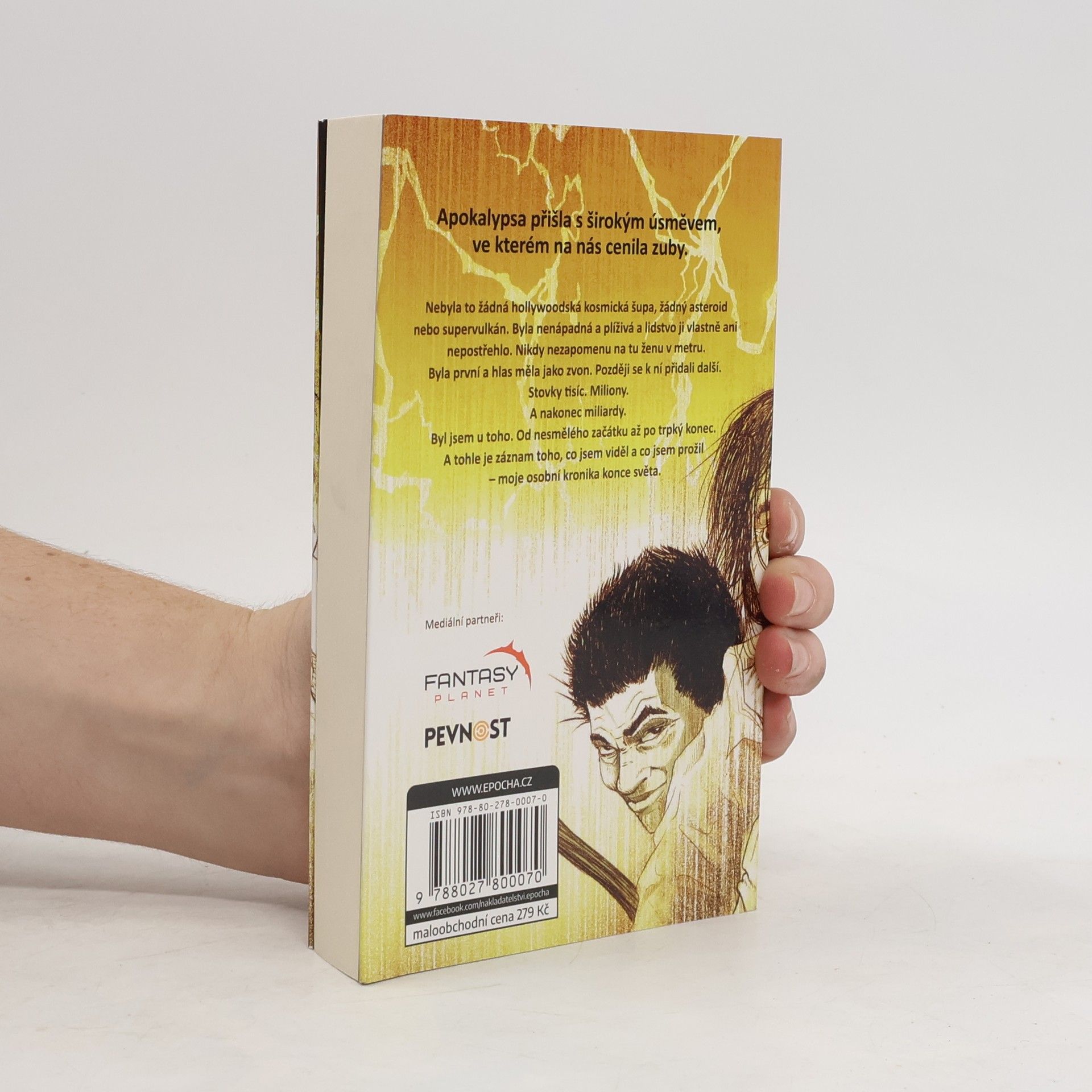 Apokalypsa přišla s širokým úsměvem, ve kterém na nás cenila zuby. Nebyla to žádná hollywoodská kosmická šupa, žádný asteroid nebo supervulkán. Byla nenápadná a plíživá a lidstvo ji vlastně ani nepostřehlo. Nikdy nezapomenu na tu ženu v metru. Byla první a hlas měla jako zvon. Později se k ní přidali další. Stovky tisíc. Miliony. A nakonec miliardy. Byl jsem u toho. Od nesmělého začátku až po trpký konec. A tohle je záznam toho, co jsem viděl a co jsem prožil – moje osobní kronika konce světa.