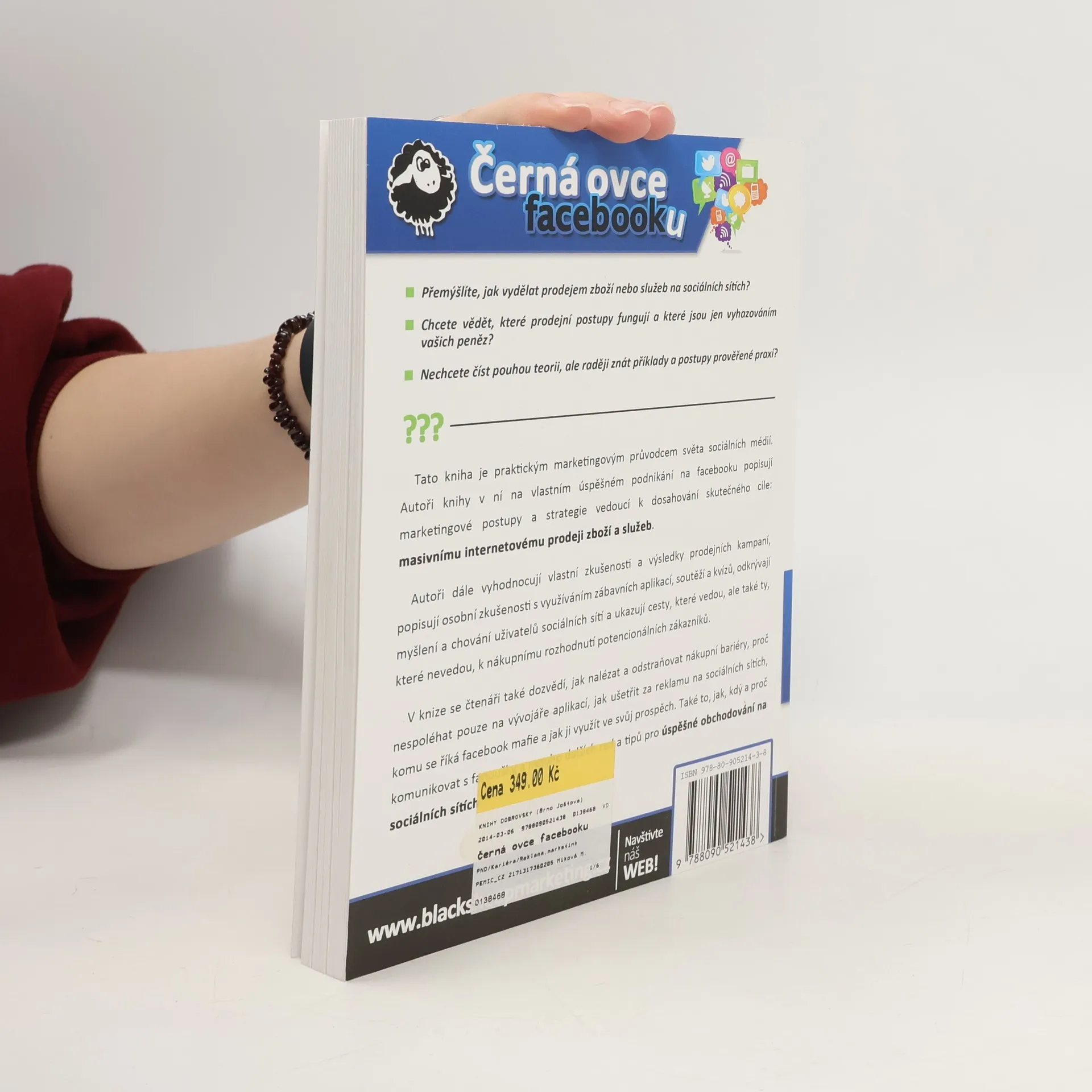 Přemýšlíte, jak vydělat prodejem zboží nebo služeb na sociálních sítích?Chcete vědět, které prodejní postupy fungují a které jsou jen vyhazováním Vašich peněz? Nechcete číst pouhou teorii, ale raději znát příklady a postupy prověřené praxí? Pak je tato kniha určena právě Vám! Kniha Černá ovce facebooku je praktickým marketingovým průvodcem světa sociálních médií. Autoři knihy v ní na vlastním úspěšném podnikání na facebooku popisují marketingové postupy a strategie vedoucí k dosahování skutečného cíle: masivnímu internetovému prodeji zboží a služeb. Autoři dále vyhodnocují vlastní zkušenosti a výsledky prodejních kampaní, popisují osobní zkušenosti s využíváním zábavních aplikací, soutěží a kvízů, odkrývají myšlení a chování uživatelů sociálních sítí a ukazují cesty, které vedou, ale také ty, které nevedou, k nákupnímu rozhodnutí potencionálních zákazníků. V knize se čtenáři také dozvědí, jak nalézat a odstranit nákupní bariéry, proč nespoléhat pouze na vývojáře aplikací, jak ušetřit za reklamu na sociálních sítích, komu se říká facebook mafie a jak ji využít ve svůj prospěch, jak, kdy a proč komunikovat s fanoušky a mnoho dalších rad a tipů pro úspěšné obchodování na sociálních sítích.