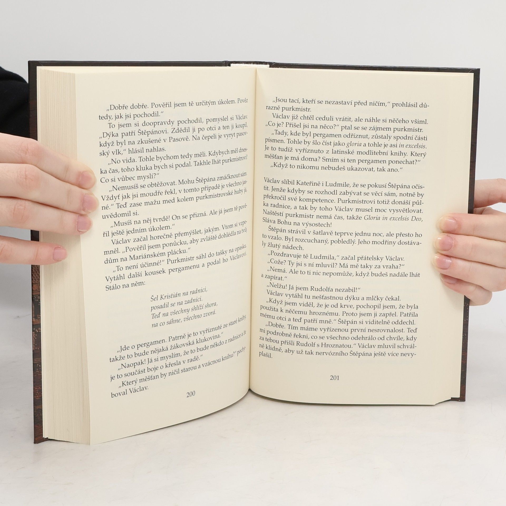 Historický dobrodružný román s detektivní zápletkou ze středověké Prahy roku 1396. Hlavním hrdinou je Václav od Černého koně (doložená historická postava), podrychtář Starého města pražského, který stojí před nesnadným úkolem vypátrat vrahy mladého pána Jindřicha Bludovského, zavražděného přímo na tržišti. Navíc hodlá najít ukradenou truhlu s penězi velkokupce Ebrlína, která zmizela v době vraždy. Zdálo by se, že svědků na trhu bude hodně, a přesto je o věrohodná svědectví nouze. Ale i tak podrychtář v roli vyšetřovatele brzy začne tušit pozadí událostí. Kde však sehnat důkazy, které by stačily k pohnání viníka před zemský soud? O nebývalé starosti má tedy Václav postaráno, zvlášť když čelí stálým nesvárům staroměstských občanů, v opuštěném domě u hřbitova straší a každou chvilku přispěje svou troškou do mlýna i Václavova manželka...