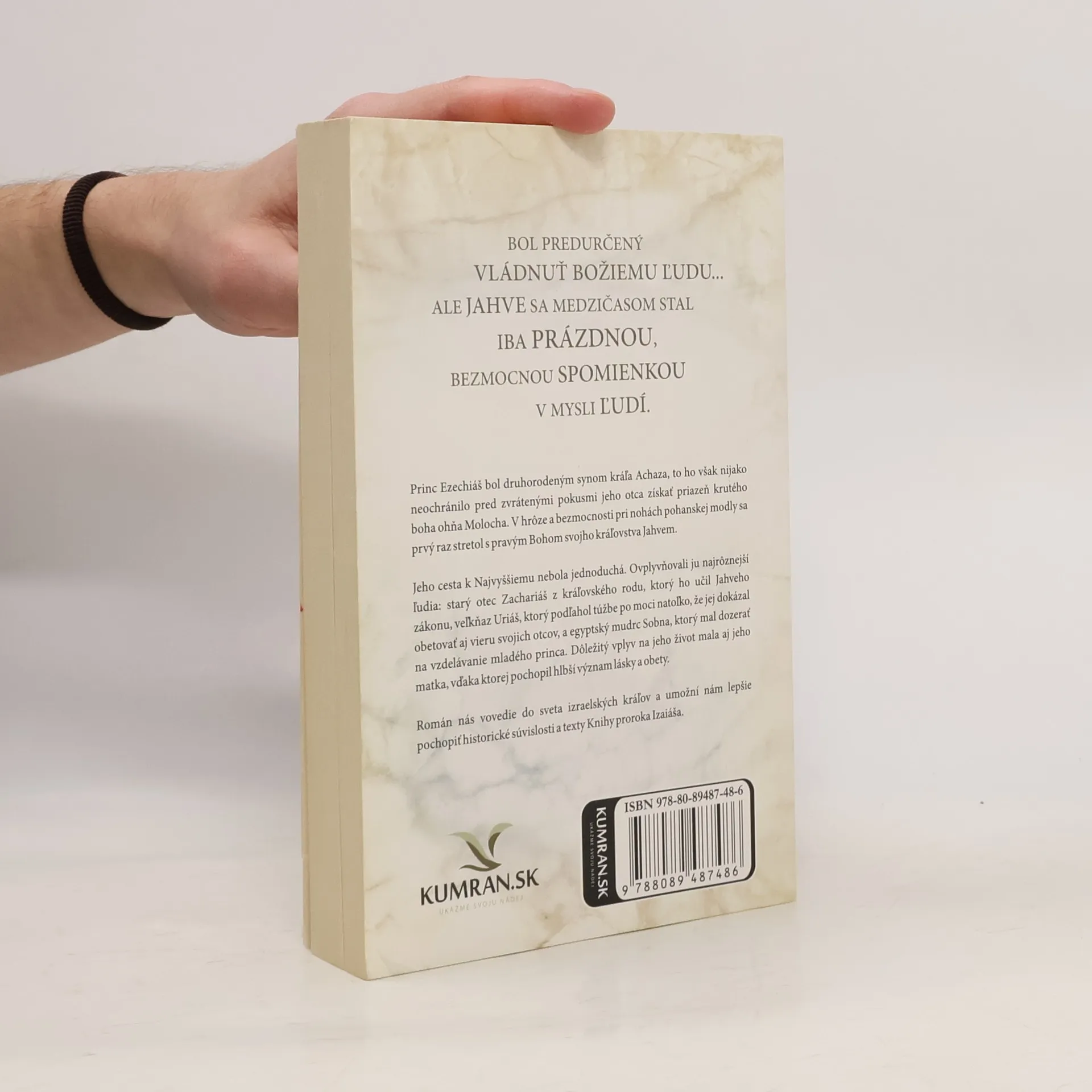 Princ Ezechiáš bol druhorodeným synom kráľa Achaza, to ho však nijako neochránilo pred zvrátenými pokusmi jeho otca získať priazeň krutého boha ohňa Molocha. V hrôze a bezmocnosti pri nohách pohanskej modly sa prvý raz stretol s pravým Bohom svojho kráľovstva Jahvem. Jeho cesta k Najvyššiemu nebola jednoduchá. Ovplyvňovali ju najrôznejší ľudia: starý otec Zachariáš z kráľovského rodu, ktorý ho učil Jahveho zákonu, veľkňaz Uriáš, ktorý podľahol túžbe po moci natoľko, že jej dokázal obetovať aj vieru svojich otcov, a egyptský mudrc Sobna, ktorý mal dozerať na vzdelávanie mladého princa. Dôležitý vplyv na jeho život mala aj jeho matka, vďaka ktorej pochopil hlbší význam lásky a obety. Román nás vovedie do sveta izraelských kráľov a umožní nám lepšie pochopiť historické súvislosti a texty Knihy proroka Izaiáša.