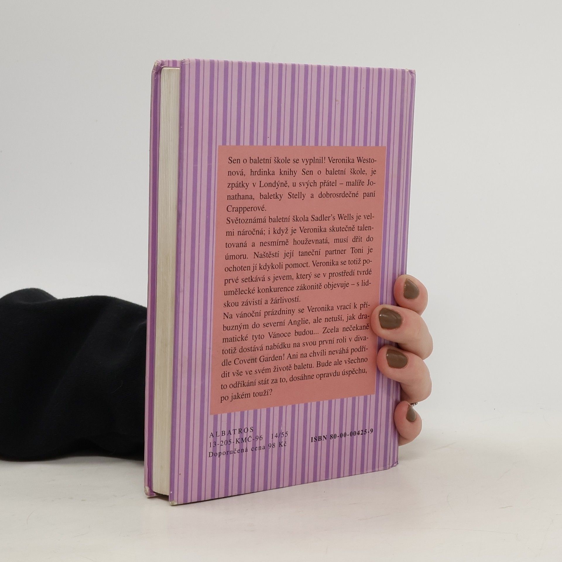 "Sen o baletní škole se vyplnil! Hrdinkou této knihy je Veronika Westonová, malíř Jonathan, baletka Stela a dobrosrdečná paní Crapperova. Světoznámá baletní škola Sadler´s Wells je velmi náročná. I když je Veronika velice talentovaná a nesmírně houževnatá, musí dřít do úmoru. Naštěstí její taneční partner Toni je ochoten ji kdykoliv pomoct. Veronika se totiž poprvé setkává s jevem, který se v prostředí tvrdé umělecké konkurence zákonitě objevuje a to s lidskou závistí a žárlivostí.