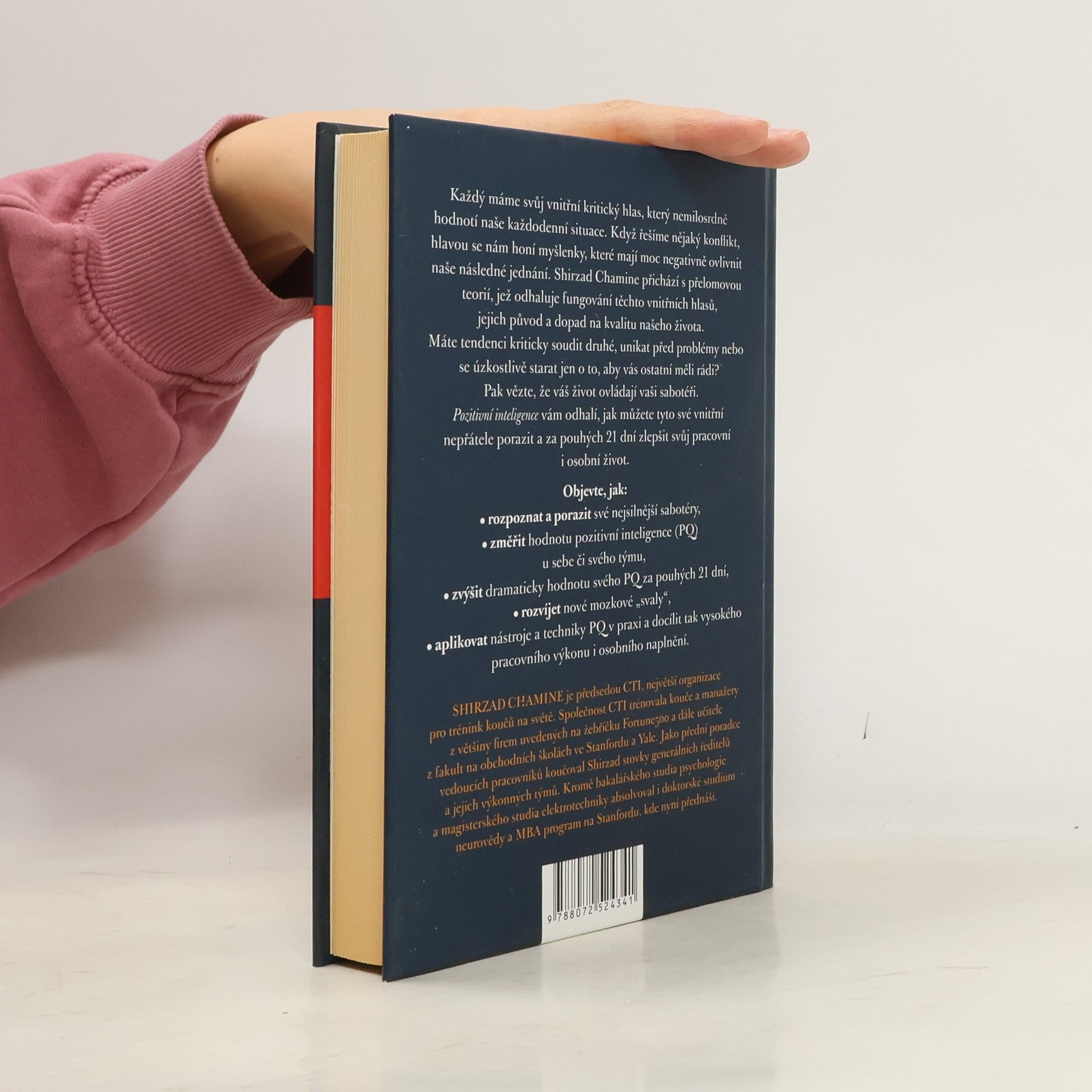 Proč je PI tak důležitá pro vaši kariéru i vztahy Každý máme svůj vnitřní kritický hlas, který nemilosrdně hodnotí naše každodenní situace. Když řešíme nějaký konflikt, hlavou se nám honí myšlenky, které mají moc negativně ovlivnit naše následné jednání. Shirzad Chamine přichází s přelomovou teorií, jež odhaluje fungování těchto vnitřních hlasů, jejich původ a dopad na kvalitu našeho života. Máte tendenci kriticky soudit druhé, unikat před problémy nebo se úzkostlivě starat jen o to, aby vás ostatní měli rádi? Pak vězte, že váš život ovládají vaši sabotéři. Pozitivní inteligence vám odhalí, jak můžete tyto své vnitřní nepřátele porazit a za pouhých 21 dní zlepšit svůj pracovní i osobní život. Objevte, jak: • rozpoznat a porazit své nejsilnější sabotéry, • změřit hodnotu pozitivní inteligence (PQ) u sebe či svého týmu, • zvýšit dramaticky hodnotu svého PQ za pouhých 21 dní, • rozvíjet nové mozkové „svaly“, • aplikovat nástroje a techniky PQ v praxi a docílit tak vysokého pracovního výkonu i osobního naplnění.