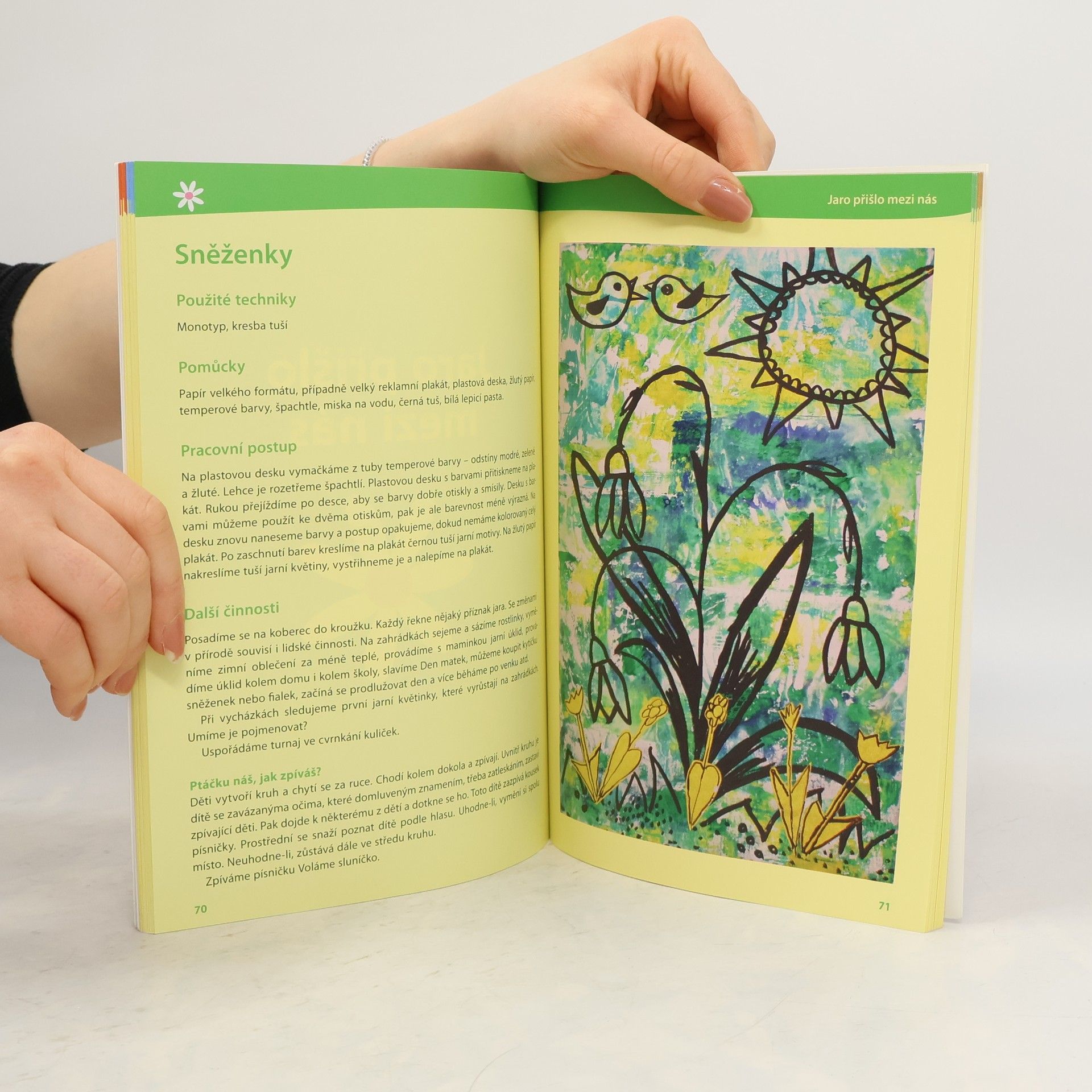 Sbírka výtvarných a rukodělných námětů a výchovných her podle jednotlivých ročních období pro vychovatele a učitele žáků 1. stupně ZŠ. Používá různé techniky kresby i malby, koláž, tisk i batiku. Náměty jsou doplněny fotografiemi výsledných dílek. Každé téma zahrnuje kromě výtvarného tvoření také související hry a činnosti, náměty k rozhovorům. Autorka pracuje jako vychovatelka ve školní družině a všechny své návody s dětmi prakticky realizovala. (www.mlp.cz)